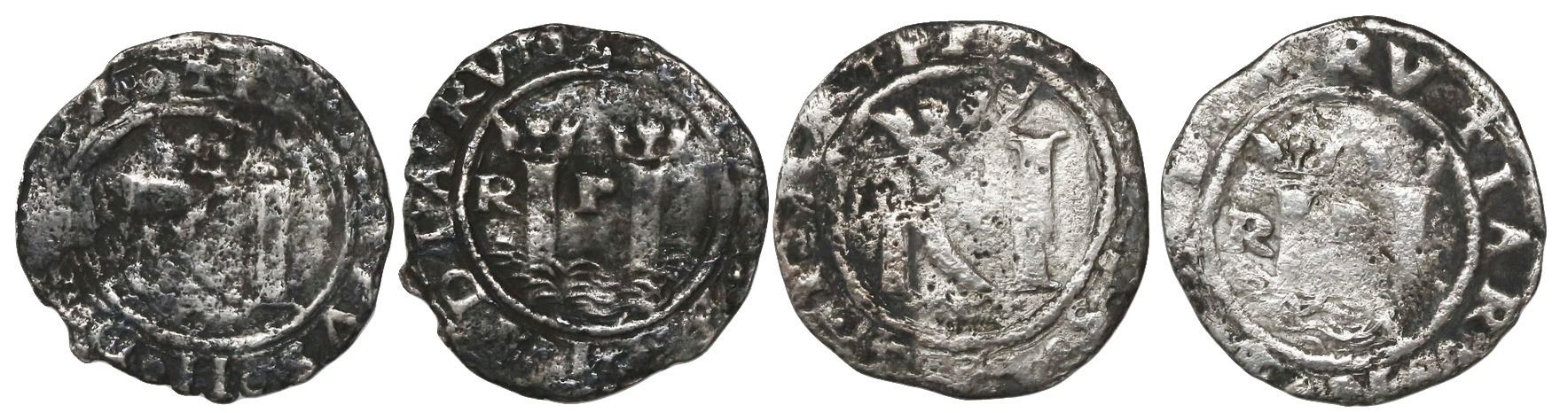Lot of two Lima, Peru, 1/2R, Philip II, assayer R (Rincon) to left. S-L1; KM-3; CT-702. 2.14 grams total. Decent details despite light to moderate corrosion as salvaged, some toning, About Fine overall.