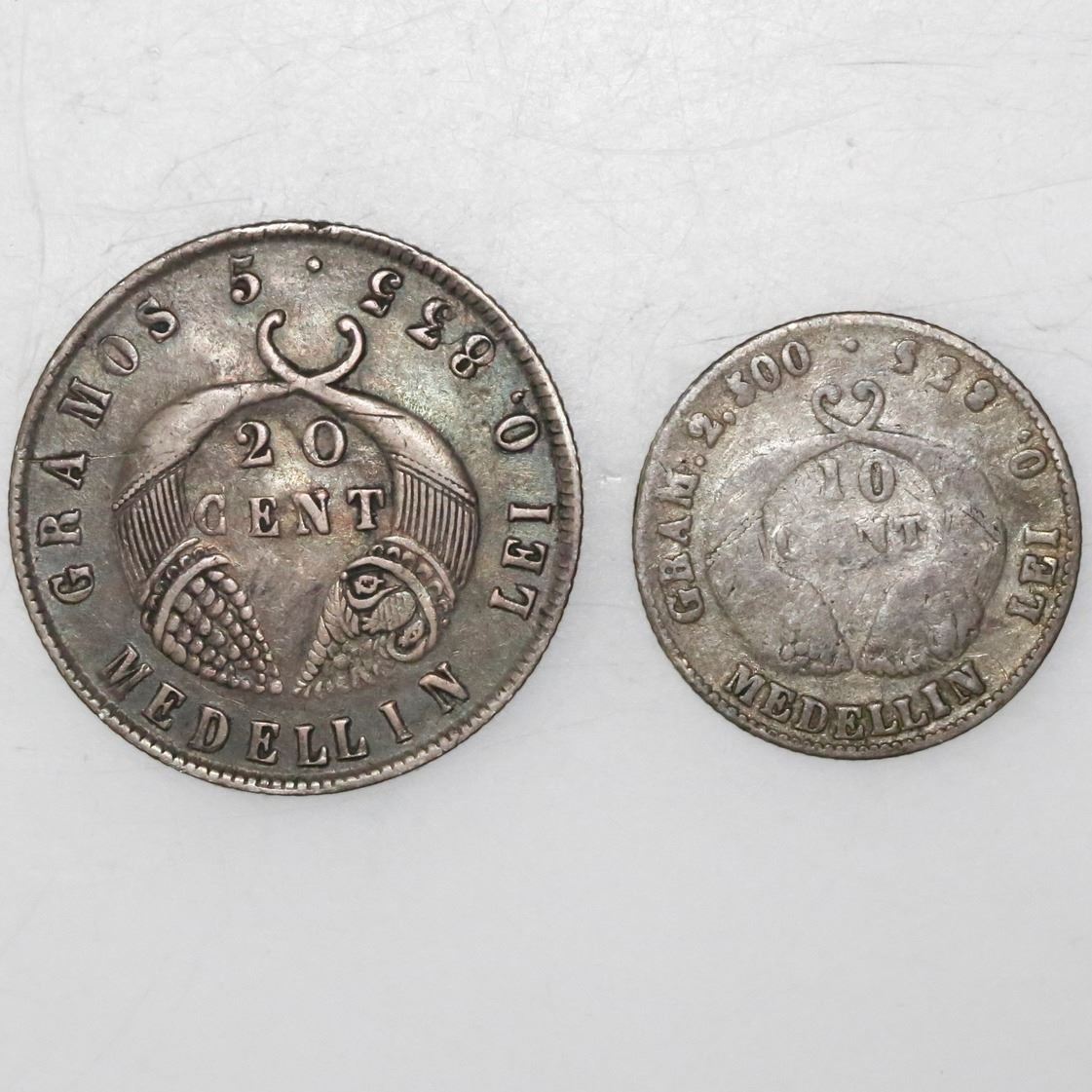 Lot of two Medellin, Colombia, 20 and 10 centavos, 1884 & 1885.