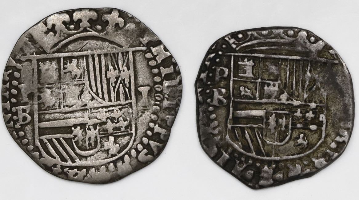 Lot of two Potosi, Bolivia, cob 1R, Philip II, assayer B (3rd period).