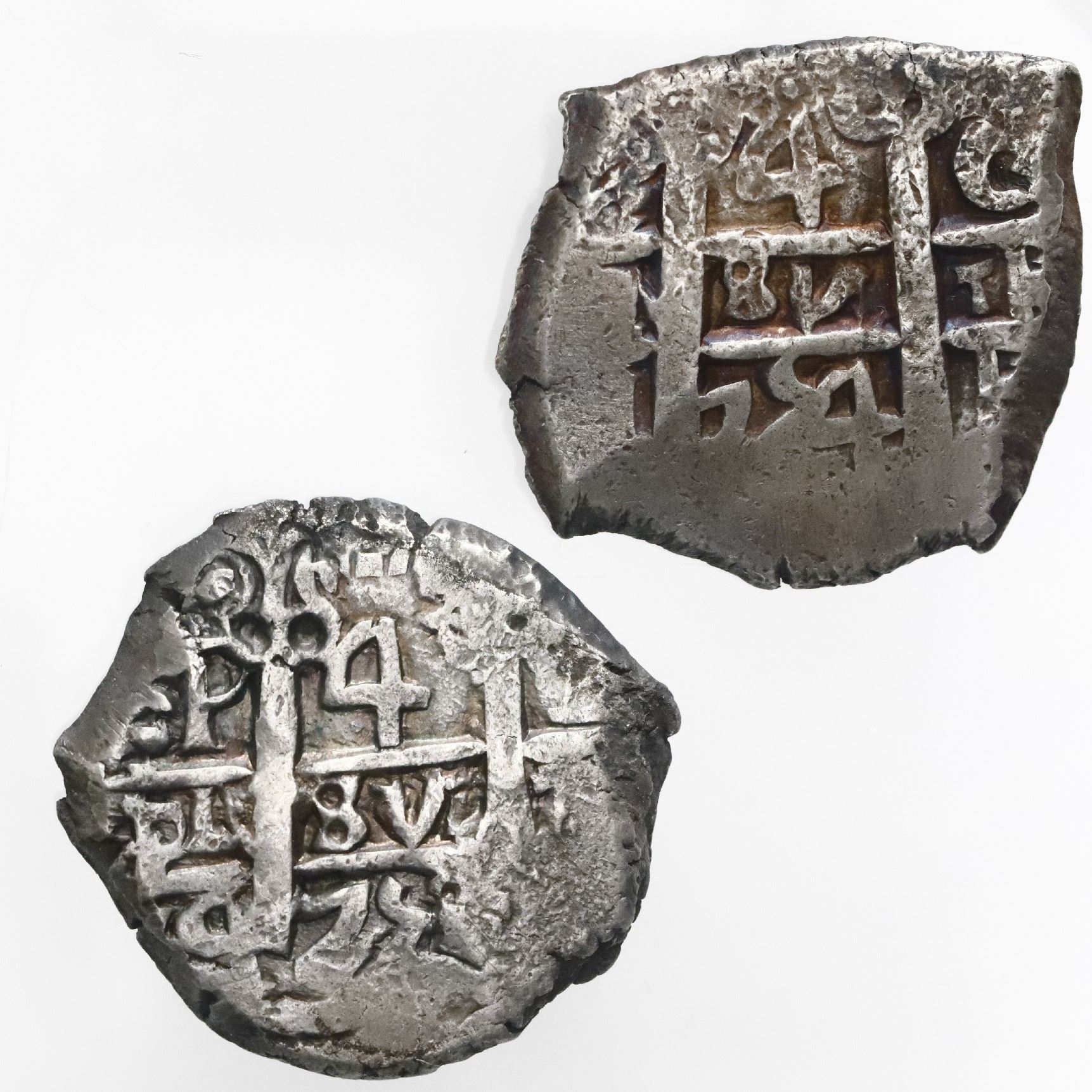 Lot of two Potosi, Bolivia, cob 4 reales: 1753(C or q) and 1754C/q.