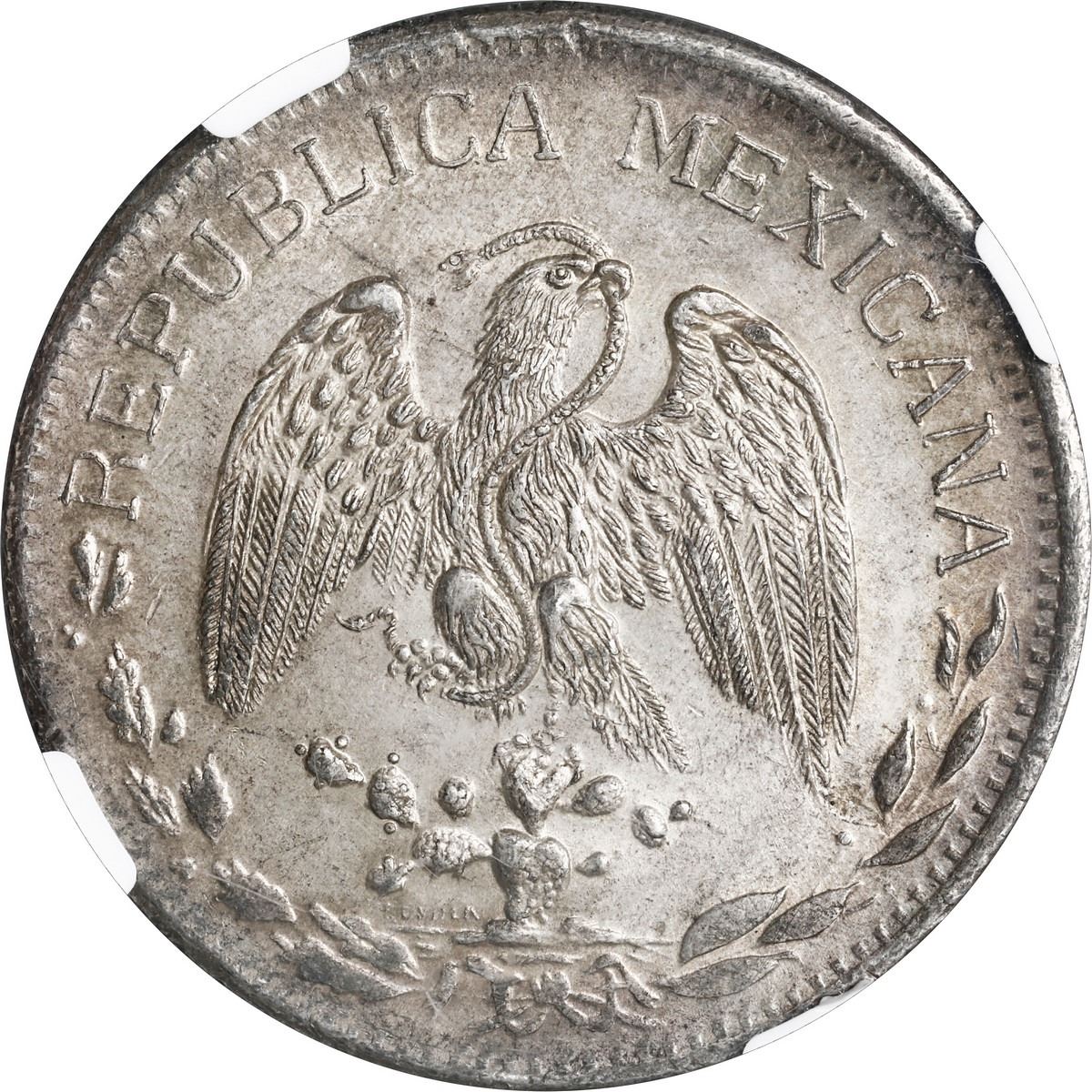 MEXICO, Chihuahua, 1 peso, 1915 FM, NGC MS 61, ex-Busto. KM-619. Light rainbow toning over muted luster, with blue peripheries around amber-gold centers, slightly crude rims, desirable grade for this popular revolutionary issue struck in the name of the famous "Army of the North," the largest revolutionary force ever assembled in the Americas, led by the iconic hero Pancho Villa. Pedigreed to the José Busto Collection.