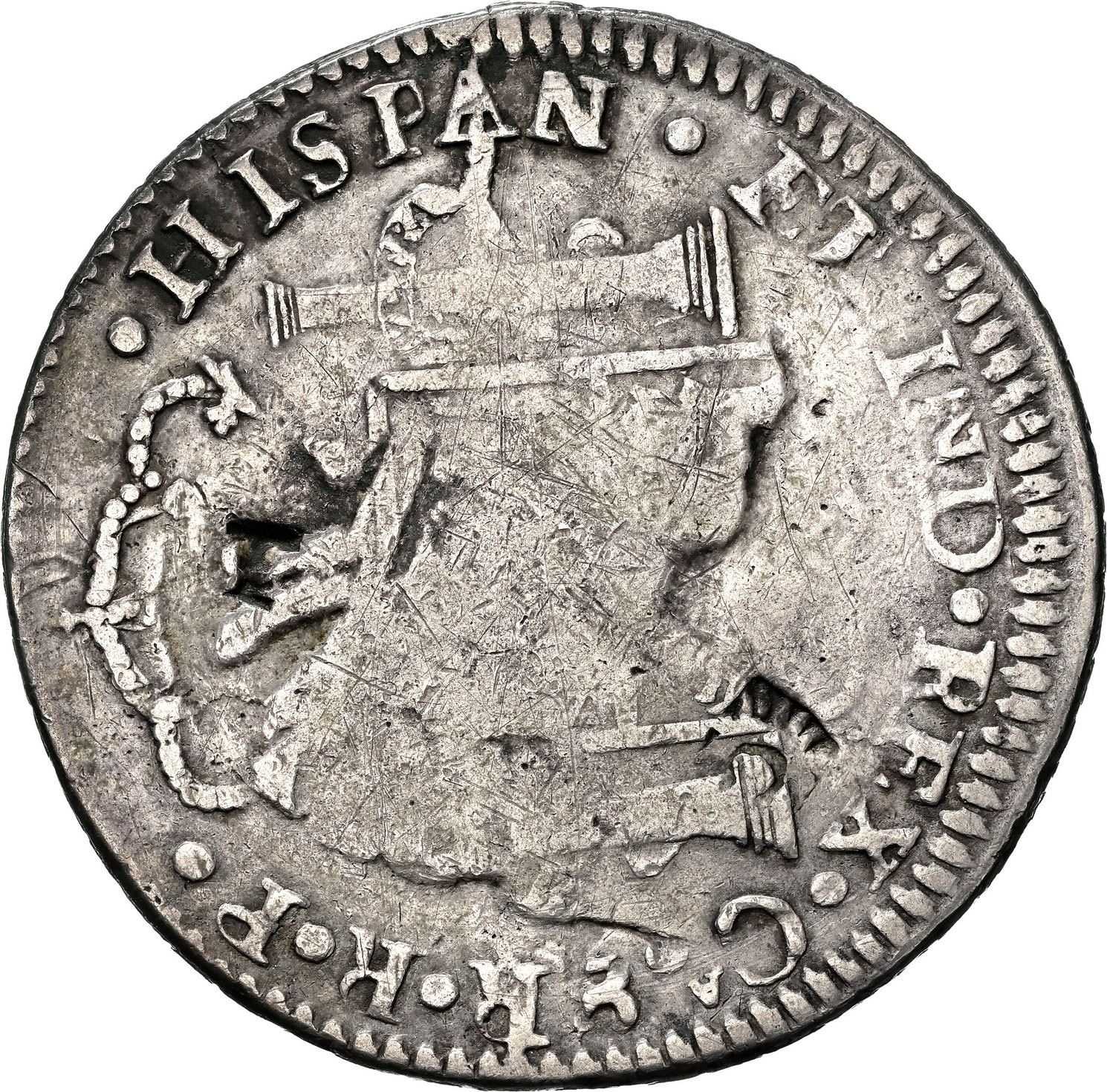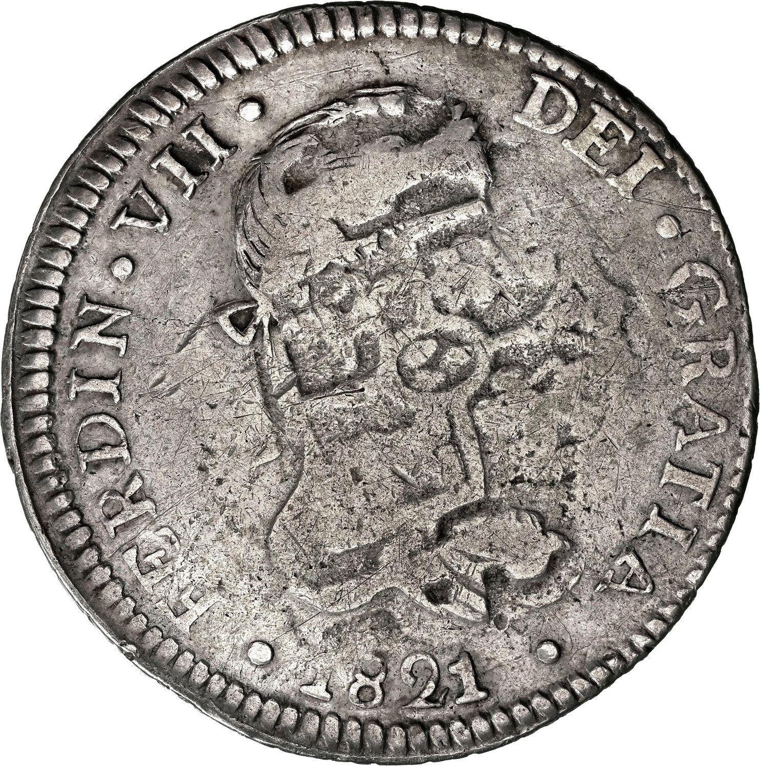 MEXICO, Chihuahua, bust 8 reales, Ferdinand VII, 1821 RP, flip-struck over a cast Chihuahua bust 8 r