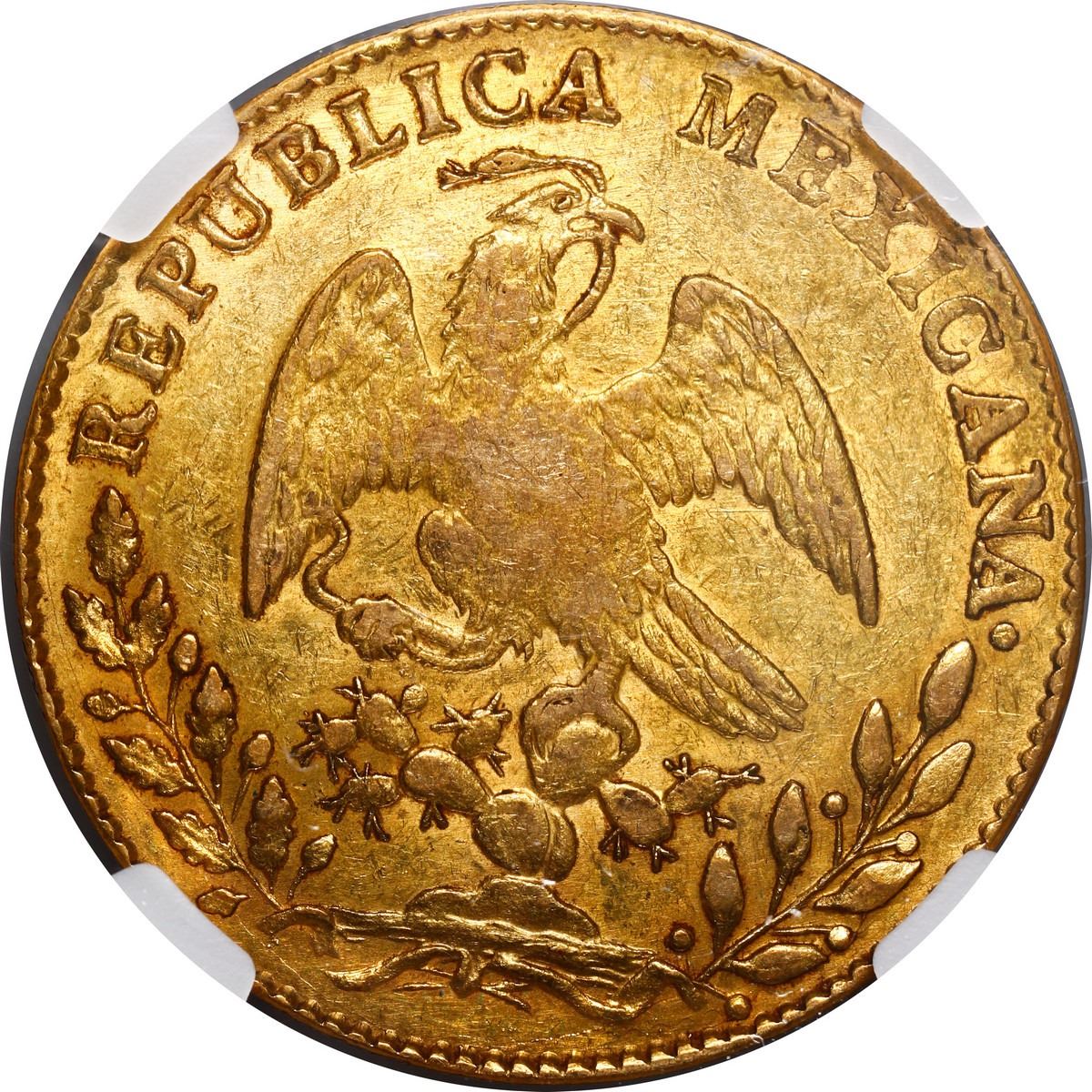 MEXICO, Culiacán, gold 8 escudos, 1869 CE, NGC XF 45.