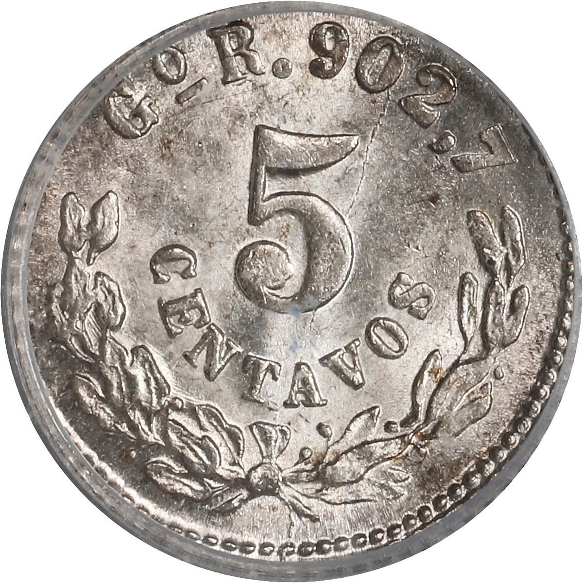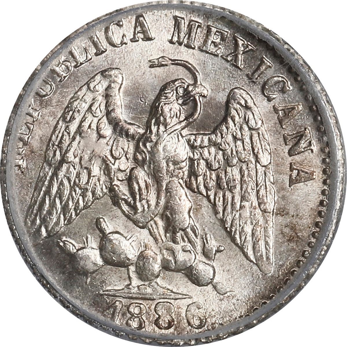 MEXICO, Guanajuato, 5 centavos, 1886 R, ICG MS 67. KM-398.5. Cartwheel luster with very faint toning, vertical die-crack on reverse, scarce grade.
