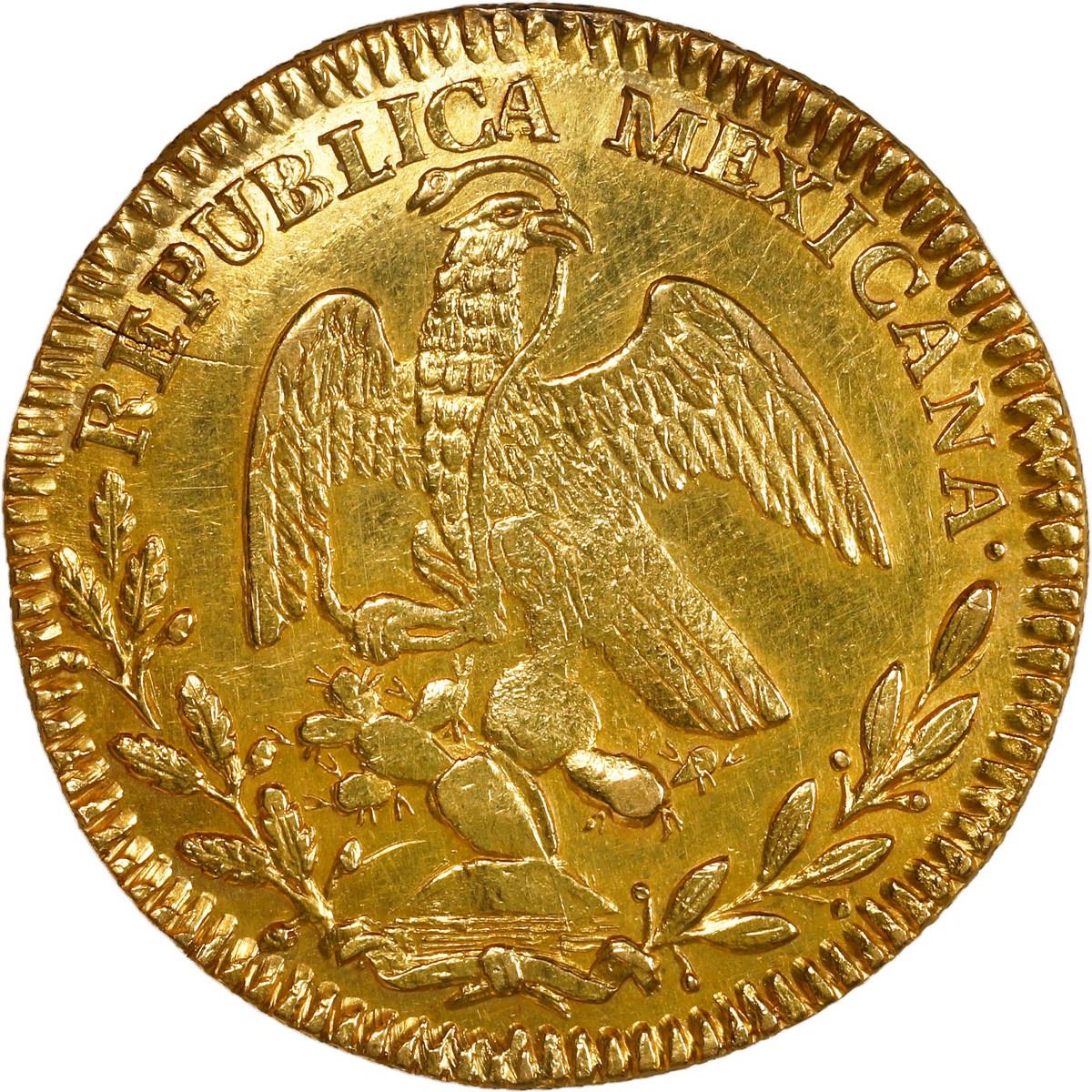 MEXICO, Guanajuato, gold 4 escudos, 1829 MJ, ex-Hubbard. KM-381.4; Fr-83. 13.48 grams. Bright AU+ with sharp details, some surface hairlines, previously mounted. Pedigreed to the Clyde Hubbard Collection, with his tag, and to the Morton & Eden auction of November 2019, with original lot-tag 547.