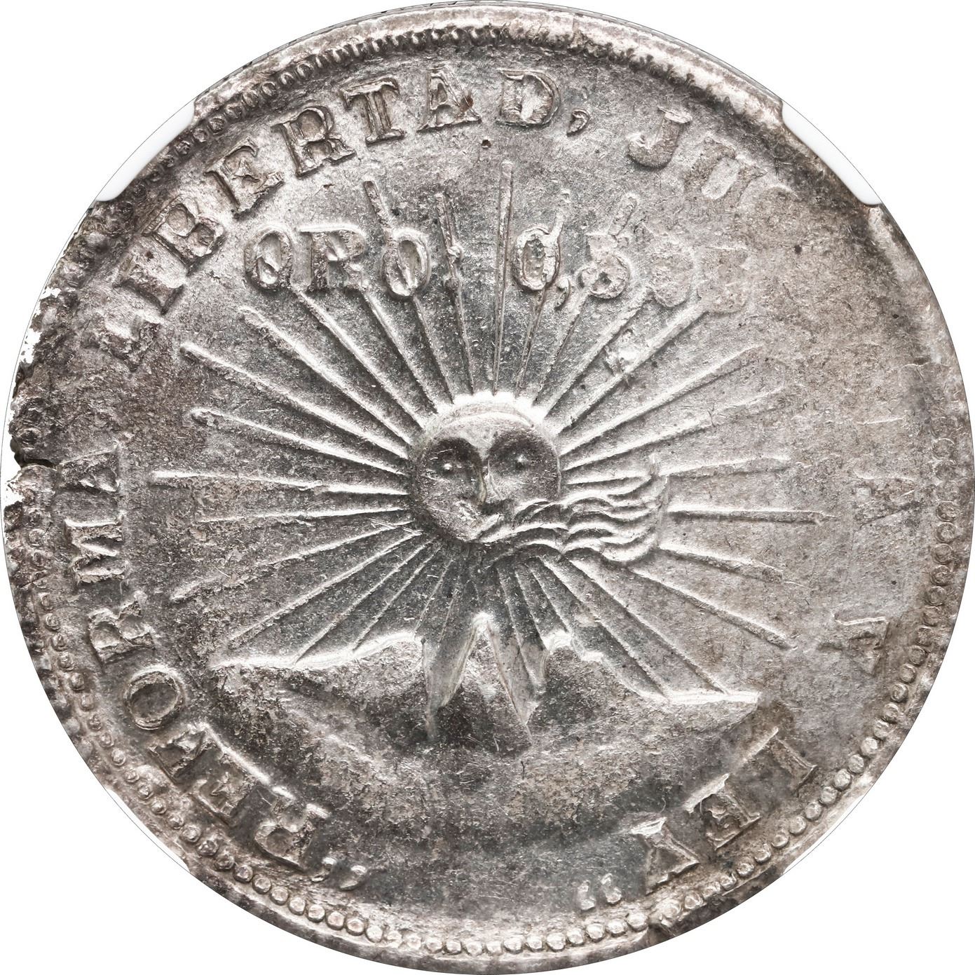MEXICO, Guerrero, 2 pesos, 1914, NGC MS 62. KM-643. Typically uneven strike yet with choice full sunface and lustrous centers, minor rim-flaws as usual, a crude but popular revolutionary issue that explicitly states a trace of gold mixed in.