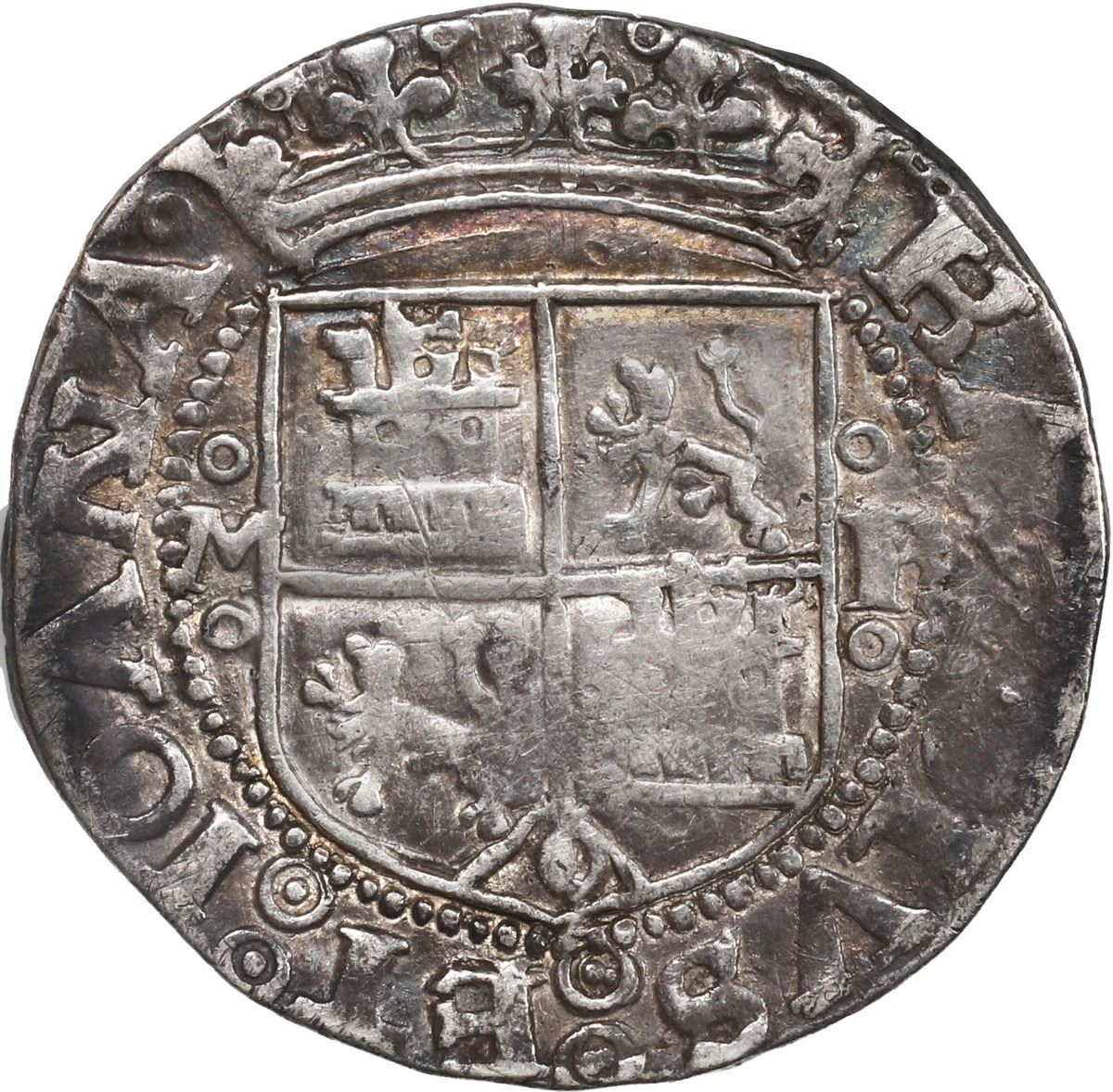 MEXICO, Mexico City, 1 real, Charles-Joanna, "Early Series," assayer P to right, mintmark M to left (oMo-oPo), motto as PLVS in left-leaning rhomboid panel with one annulet in each side, rare. Nesmith-24 for type/24a; Cal-63; S-M4; KM-unl (7 for type). 3.31 grams. VF with full and bold legends, weaker inner details, nice rich toning throughout. Note that smaller denominations are harder to find and many are worn from use, unlike the 4 reales, especially those from shipwrecks.