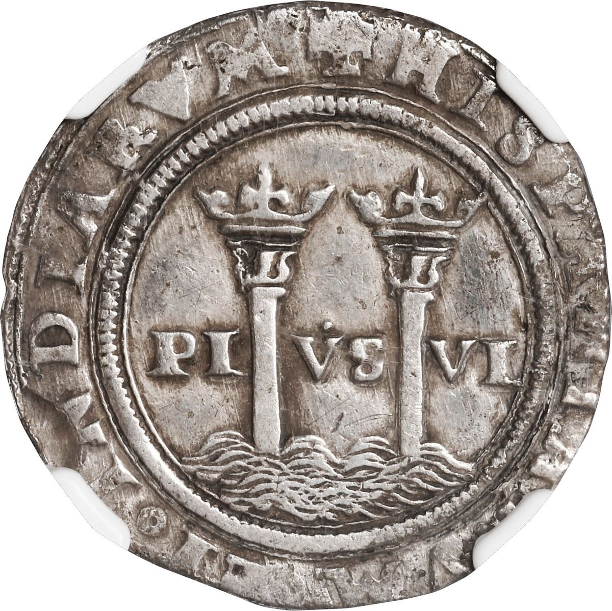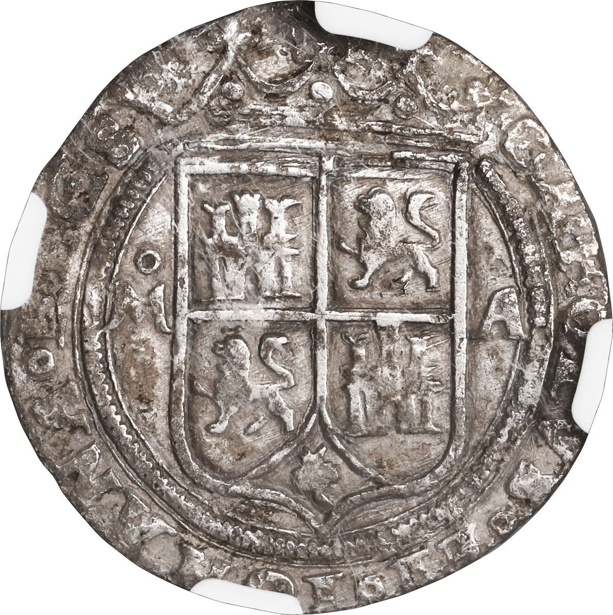 MEXICO, Mexico City, 1 real, Charles-Joanna, "Late Series," assayer A to right, mintmark oM to left (oM-A), rare, NGC XF details / environmental damage. Nesmith-64; Cal-68; S-M6; KM-9. A rather rare type in Nesmith's time, this example with full legends and inner details, some corrosion on shield side and a small nick on pillars side.