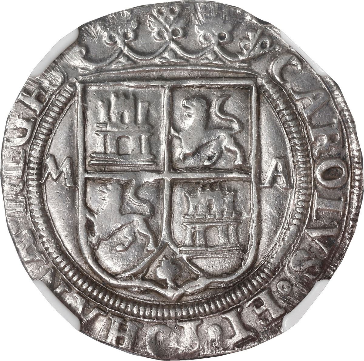 MEXICO, Mexico City, 2 reales, Charles-Joanna, "Late Series," assayer A to right, mintmark M to left (M-A), rare, NGC AU 50, ex-Rudman. Nesmith-57b type; Cal-97; S-M6; KM-12. 6.60 grams. Choice bold details, nearly full legends, and much luster (non-toned), struck on a full flan. Note the high grade and important pedigree. Pedigreed to the Isaac Rudman collection (stated on label).