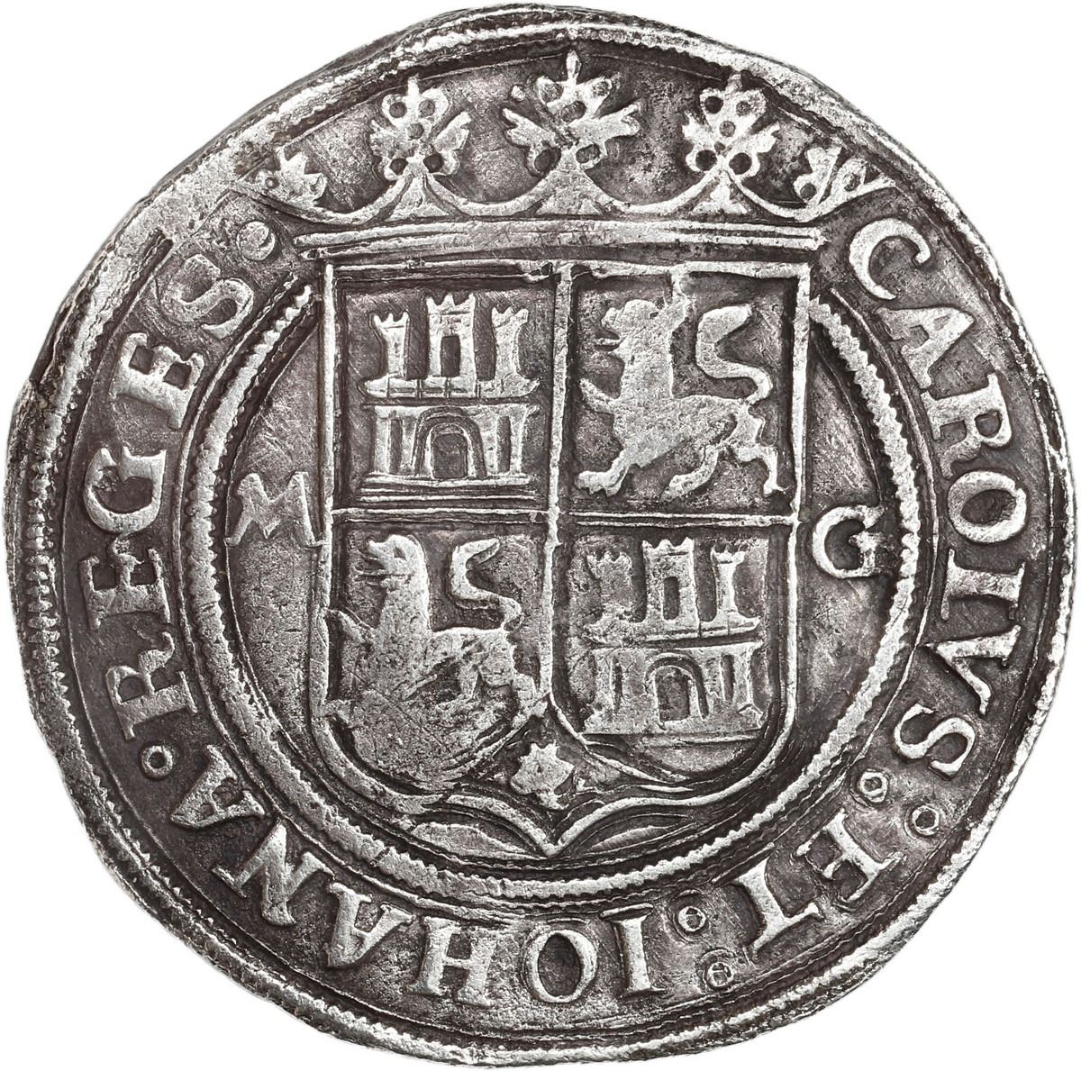 MEXICO, Mexico City, 4 reales, Charles-Joanna, "Late Series," assayer G to right, mintmark M to left (M-G). Nesmith-50c type; Cal-127; S-M5; KM-18. 13.03 grams. Well centered and struck on a very broad round flan with very bold full legends (especially on the shield side), XF details with contrasting toning. Recovered from: “Golden Fleece Wreck,” sunk ca. 1550 in the northern Caribbean