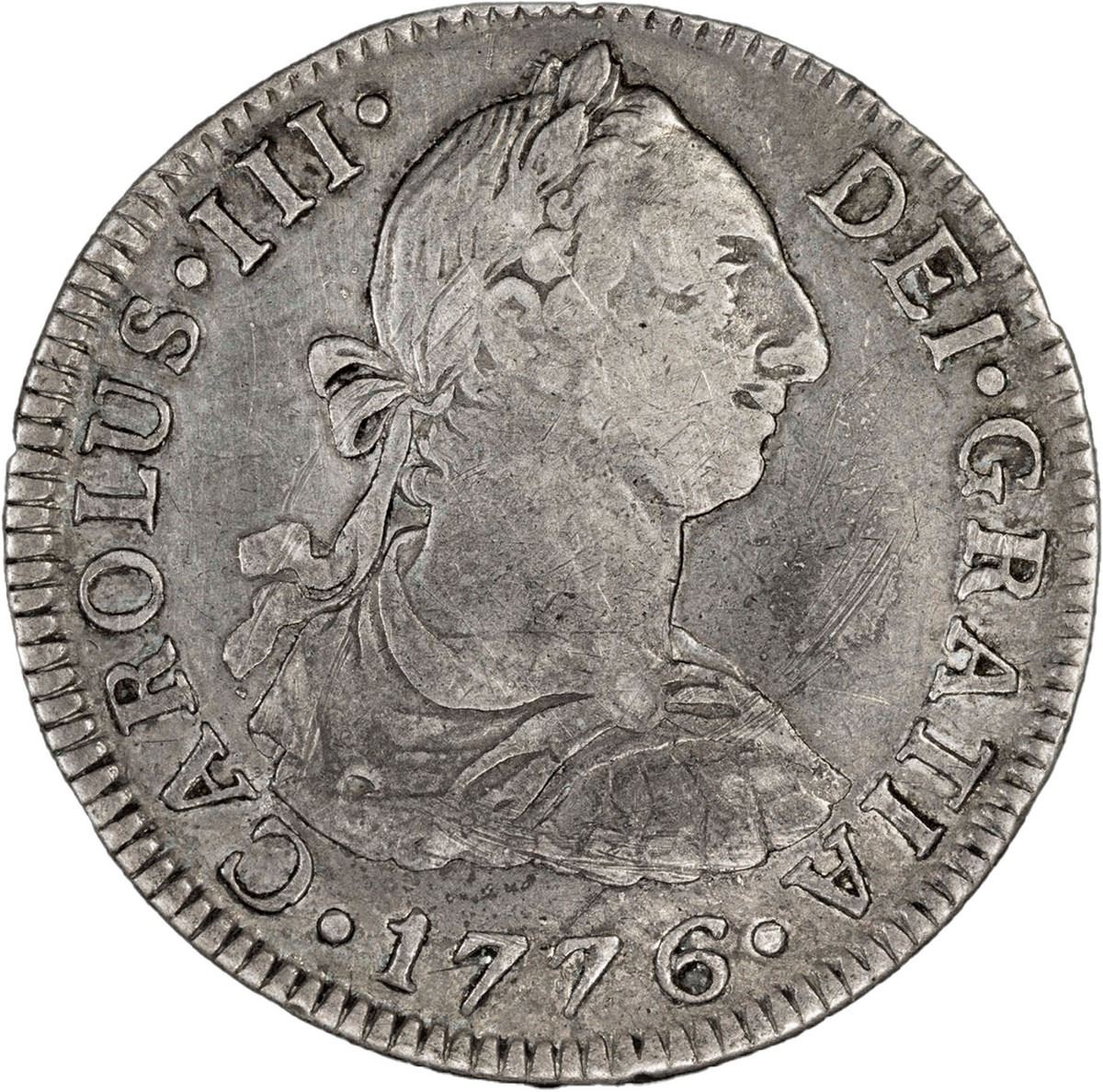 MEXICO, Mexico City, bust 2 reales, Charles III, 1776 FM, PCGS VF details / tooled. Yonaka-M2.76; KM-88.2; Cal-662. Richly toned piece with old scratches on the bust and pillars, popular date as the year of U.S. independence.