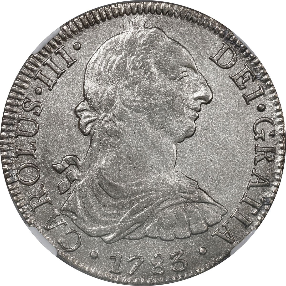 MEXICO, Mexico City, bust 8 reales, Charles III, 1783 FF, NGC Genuine (El Cazador Shipwreck Label).