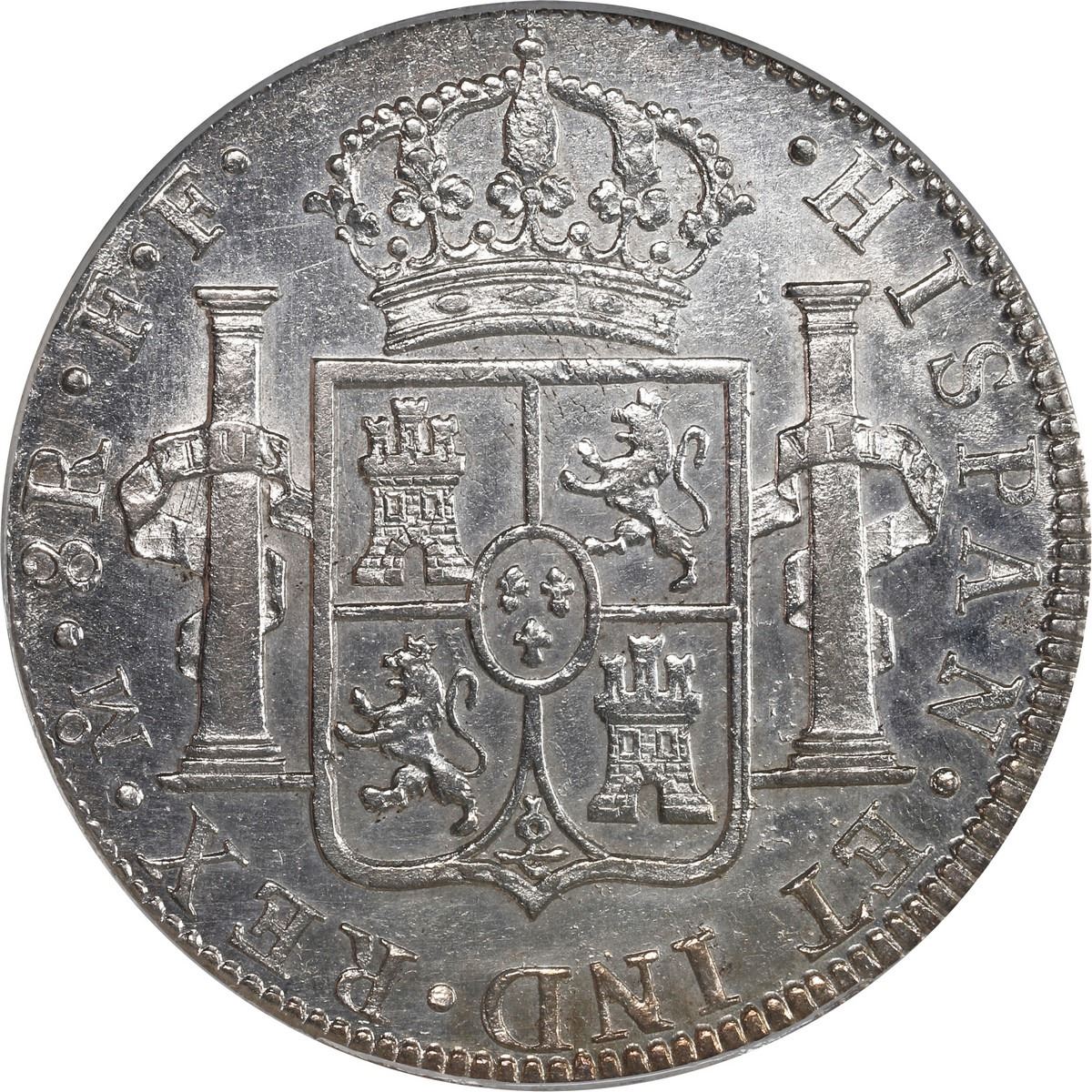MEXICO, Mexico City, bust 8 reales, Charles III, 1783 FF, PCGS AU58. Yonaka-M8.83; KM-106.2; Cal-1124. Very flashy with brilliant luster, incipient orange toning at bottom edge, good strike with full rims, faintly hairlined.