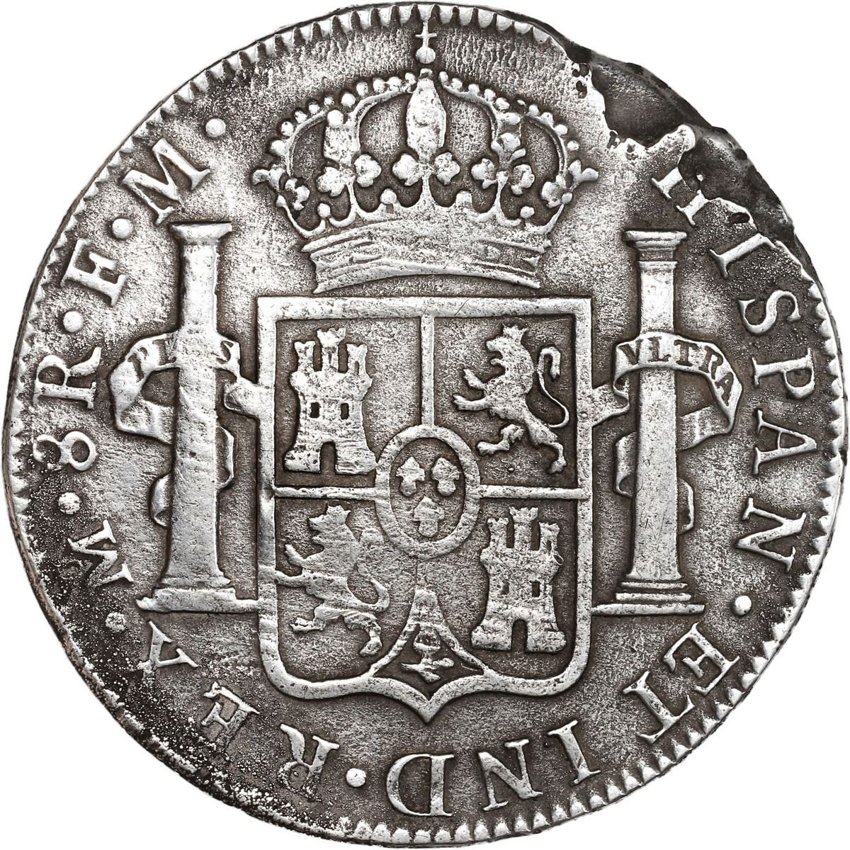 MEXICO, Mexico City, bust 8 reales, Charles III, 1785 FM. Yonaka-M8.85; KM-106.2; Cal-1127. 25.48 grams. Bold XF details with minimal surface corrosion but some minor rim-loss, very lightly toned. Pedigreed to the Steve Valentine Collection, with original certificate from the salvor/conservator. Recovered from: Cabalva, sunk in 1818 off Mauritius in the Indian Ocean