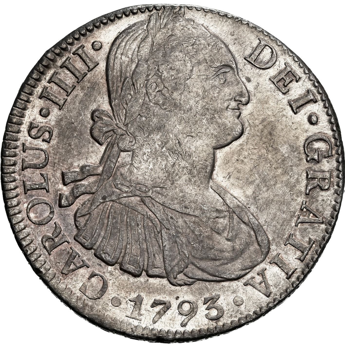 MEXICO, Mexico City, bust 8 reales, Charles IV, 1793 FM, NGC AU 50.
