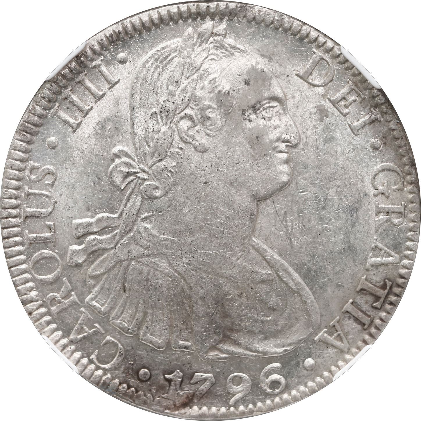 MEXICO, Mexico City, bust 8 reales, Charles IV, 1796 FM, NGC MS 61.