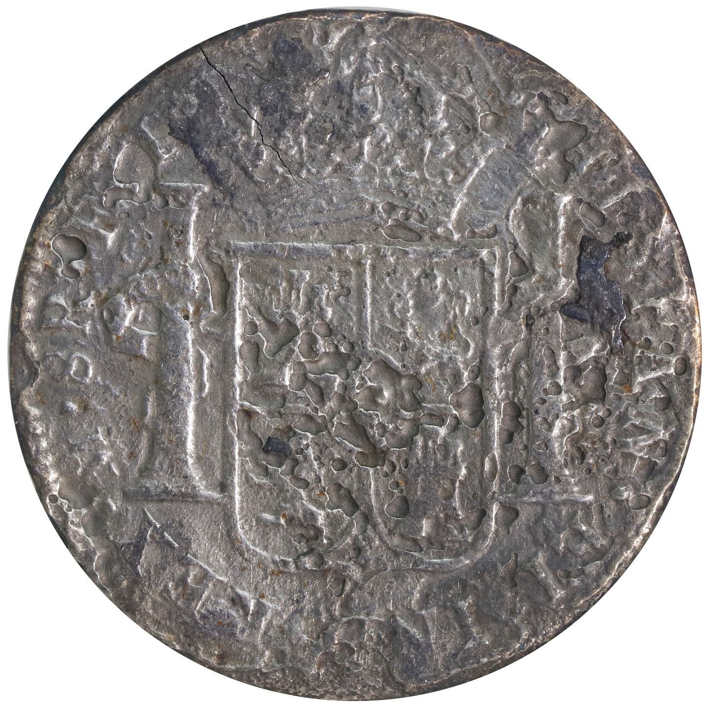 MEXICO, Mexico City, bust 8 reales, Charles IV, 1801 FT. Cal-972; KM-109. 5" x 3-1/2". Corroded but with clear date, assayer, and king's name. Housed in a thick plastic capsule from Collectors Coin Gallery with coin and wreck information. Recovered from: Cabalva, sunk in 1818 off Mauritius in the Indian Ocean