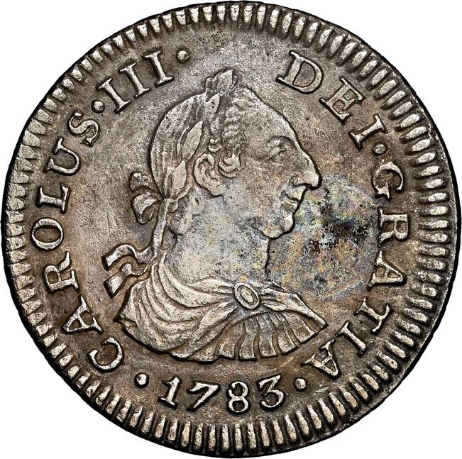 MEXICO, Mexico City, bust ½ real, Charles III, 1783 FF, NGC AU details / saltwater damage (El Cazador Shipwreck Label). KM-69.2; Cal-211; Yonaka-M05.83. Sharply detailed piece with very light saltwater exposure, spots of colorful toning in the fields. Recovered from: El Cazador, sunk in 1784 in the Gulf of Mexico
