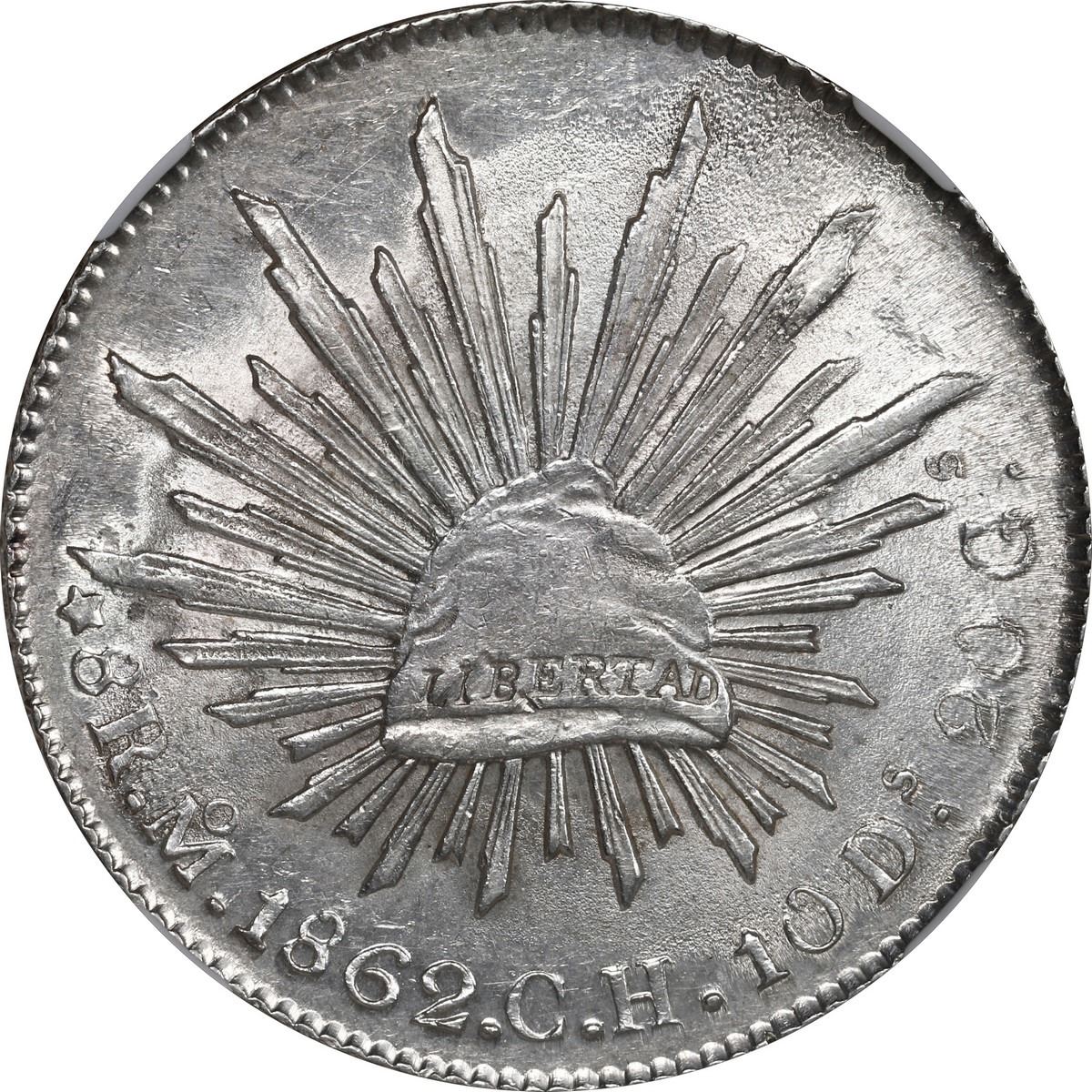 MEXICO, Mexico City, cap-and-rays 8 reales, 1862 CH, NGC MS 62.