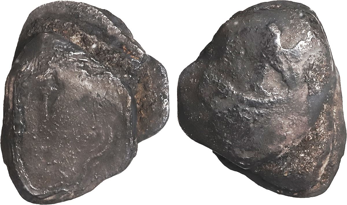 MEXICO, Mexico City, clump of three cob 8 reales, probably all Charles II. 39 grams total. roughly 1½" x 1¼" x ¼". Tight stack of three very worn, black-toned coins, one with cross-side visible, some brown encrustation in between but exteriors smooth. With original certificate from the salvors. Recovered from: Joanna, sunk in 1682 off South Africa