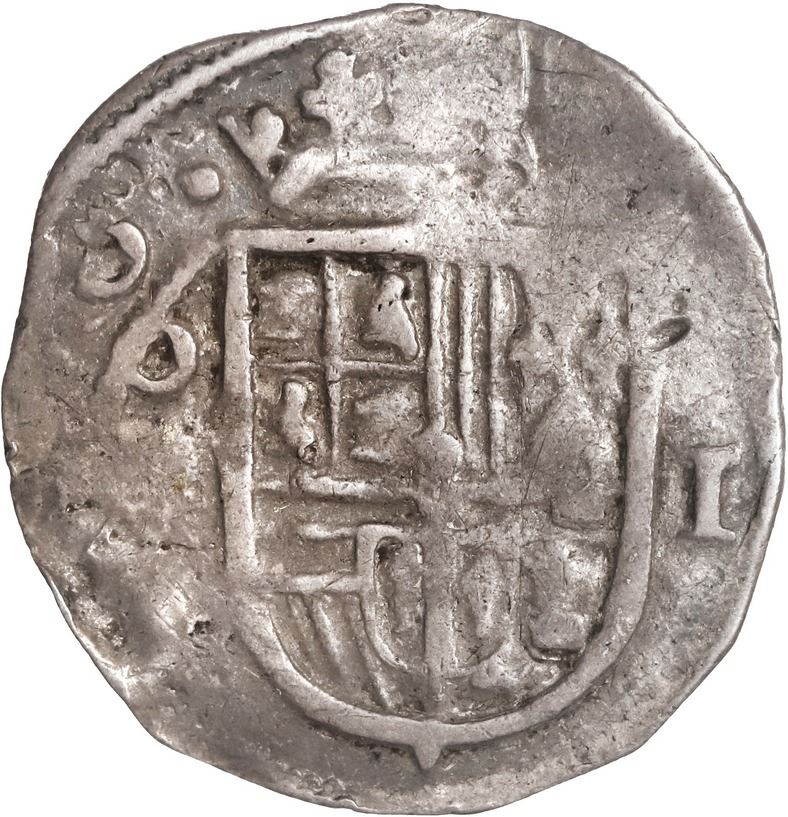 MEXICO, Mexico City, cob 1 real, 1610/09, assayer not visible (F or F/A), ex-Hubbard. KM-27.2; Cal-Type 102. 3.22 grams. Very bold full 0/9 of date above mintmark oM, denomination I to right, good full shield and cross, lightly toned AVF with parts of edge slightly crude (as made). Pedigreed to the Clyde Hubbard Collection, with his tag.