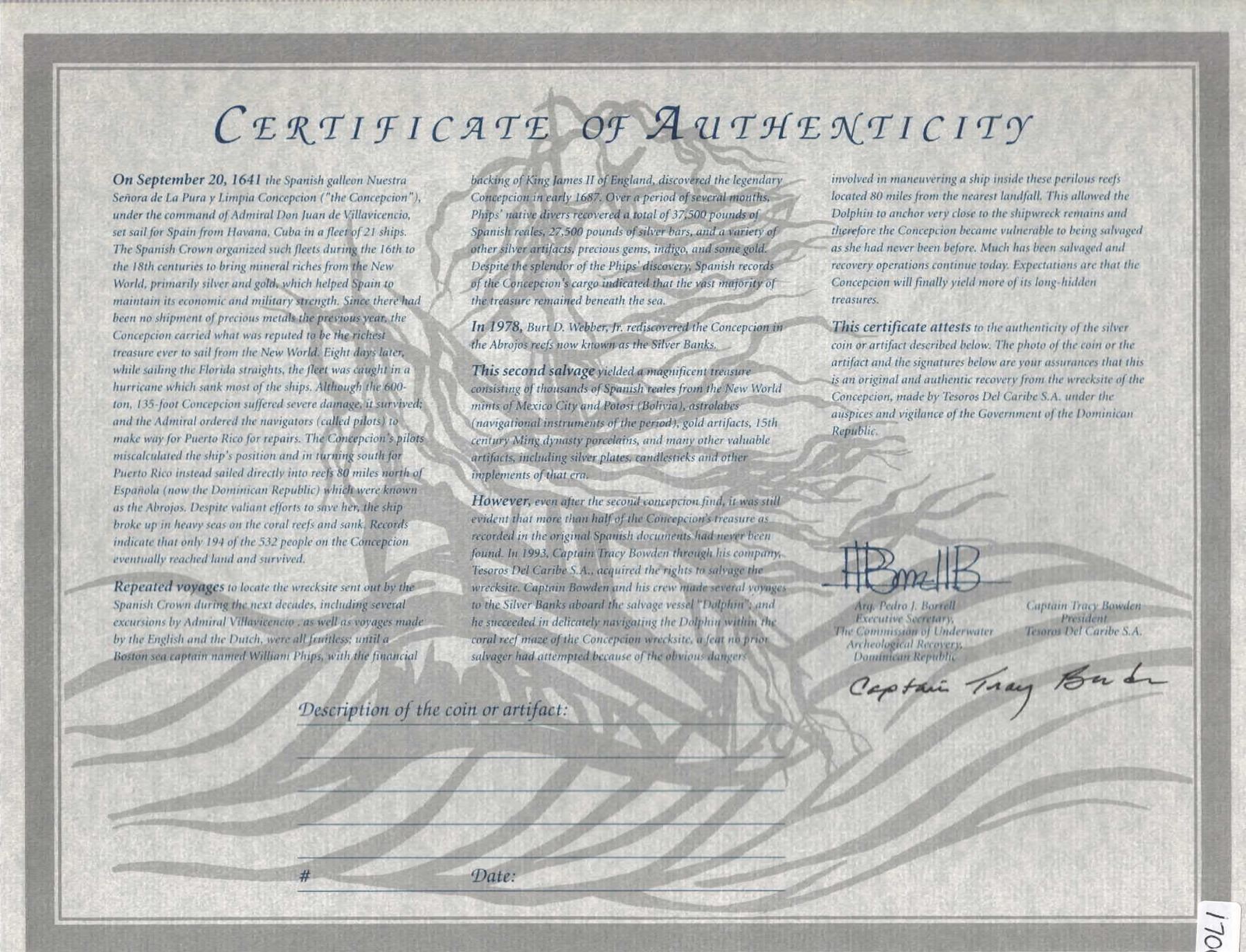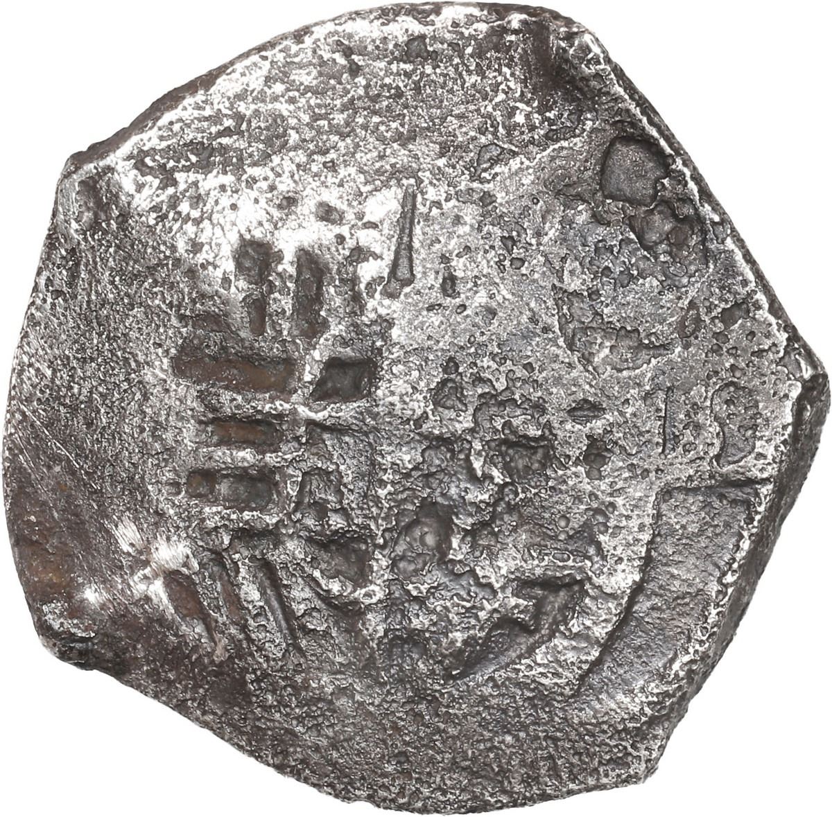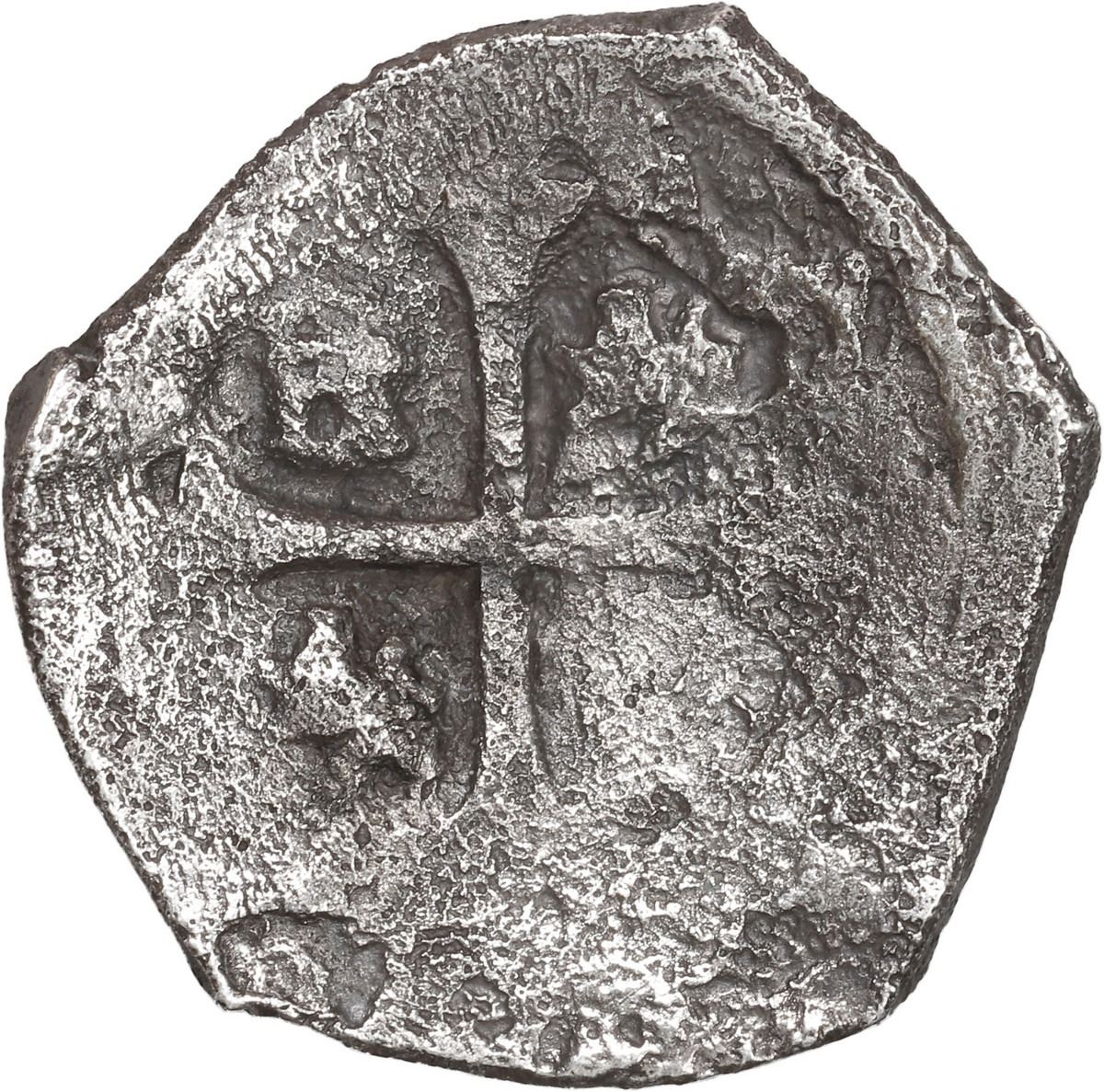 MEXICO, Mexico City, cob 2 reales, Philip IV, assayer not visible (P). S-M19; KM-33; Cal-Type 236. 5.52 grams. A little corroded and dark but with bold partial shield and cross. With original certificate from Captain Tracy Bowden through his contract with the Dominican Republic. Recovered from: Concepción, sunk in 1641 off Hispaniola
