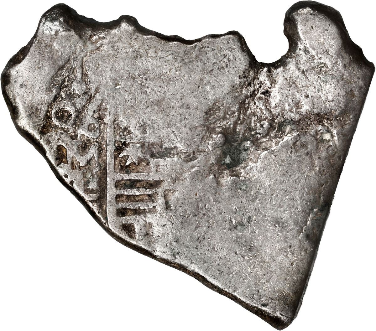 MEXICO, Mexico City, cob 8 reales, 1690 L, neat shape, rare. S-M21; KM-46; Cal-650. 26.40 grams. Crazy shape with one straight side but the rest a jumble of curves including a small knob, full and clear oML and 90 of date but the rest of the coin almost all flat and with natural surface void on obverse, no worse than VG overall for actual wear. Pedigreed to the Herrero auction of October 1991 (lot 399).