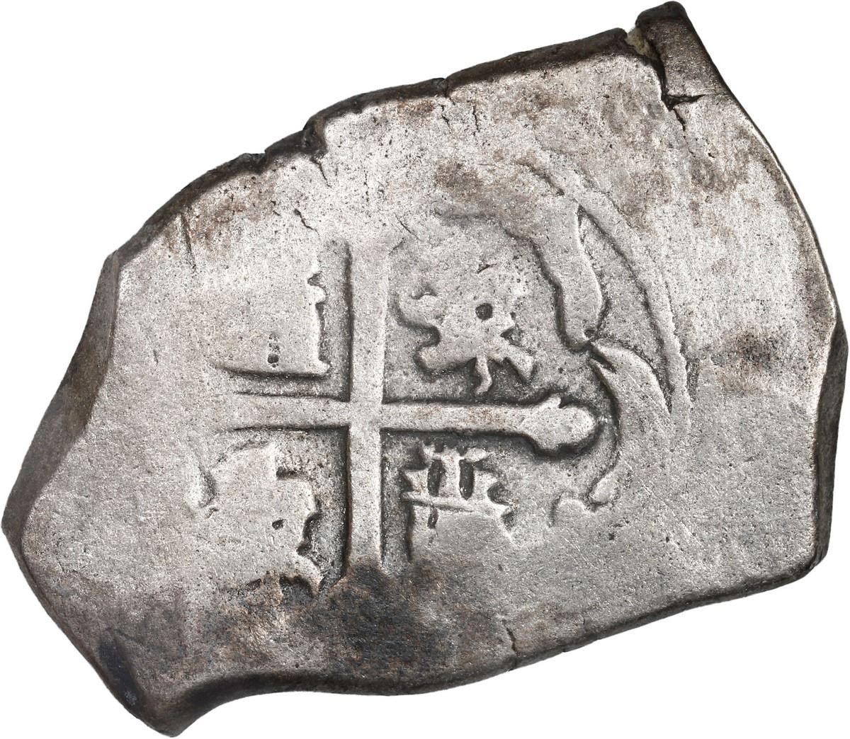 MEXICO, Mexico City, cob 8 reales, (1714-15) (J), new-style shield, old-style cross. S-M22; KM-47; Cal-Type 170. 26.01 grams. Solid and uncorroded, with nearly full (well-centered) cross, most of off-center crown and shield, a few spots of coppery toning. Recovered from: Spanish 1715 Fleet, sunk off the east coast of Florida