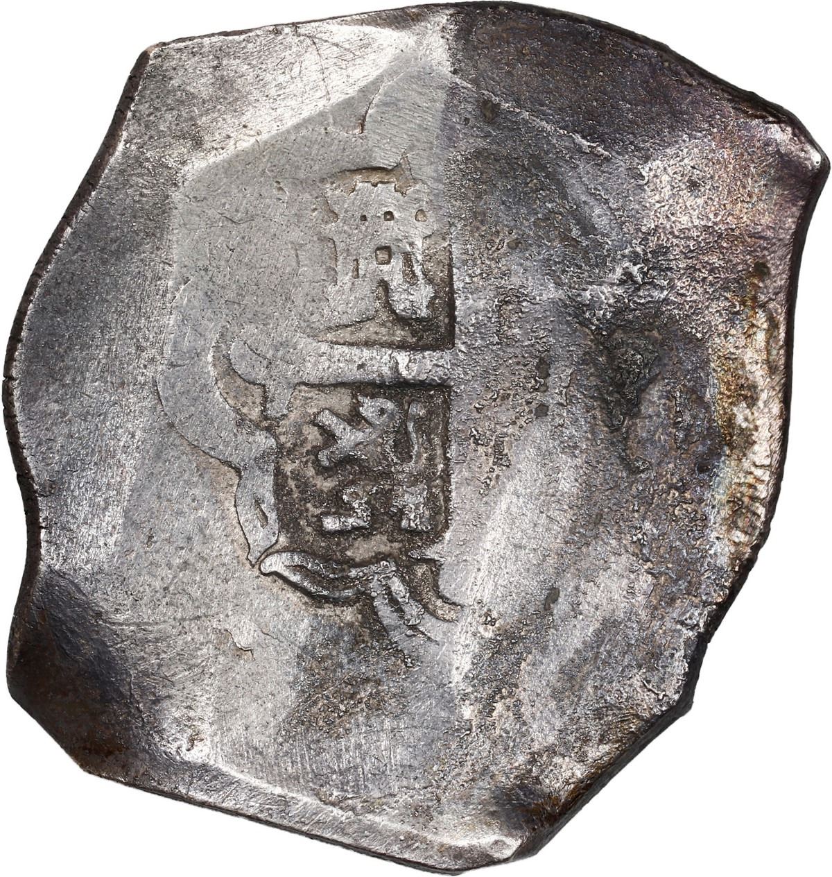 MEXICO, Mexico City, cob 8 reales, 1715 (J), new-style cross, ex-Christensen. S-M22; KM-47; Cal-1402. 25.80 grams. Broad, squarish flan with one point slightly bent, bold 15 of date, no corrosion but much peripheral flatness, uneven light toning, desirable provenance linked to the Real Eight finds in the 1960s. With original Henry Christensen envelope. Recovered from: Spanish 1715 Fleet, sunk off the east coast of Florida