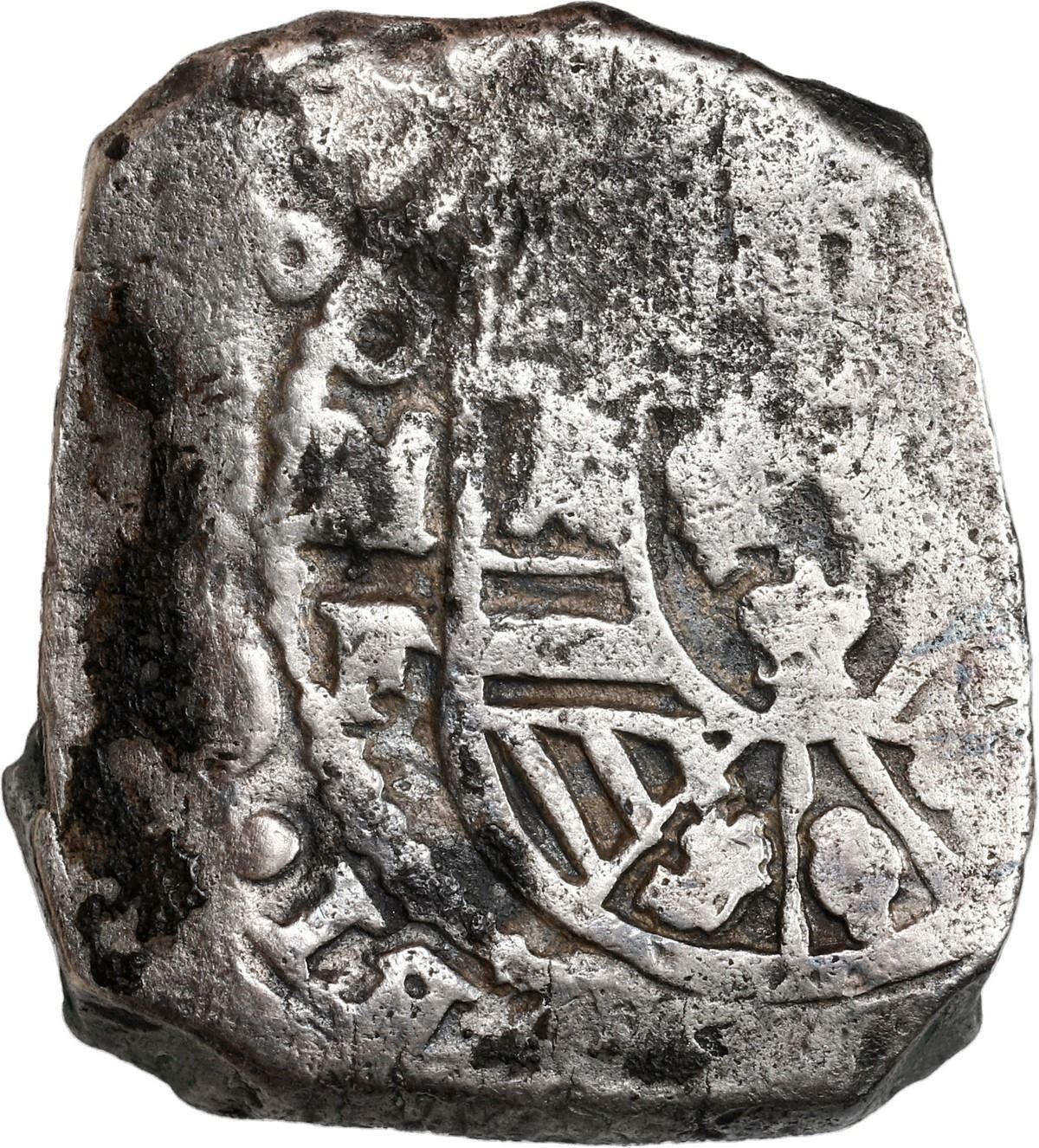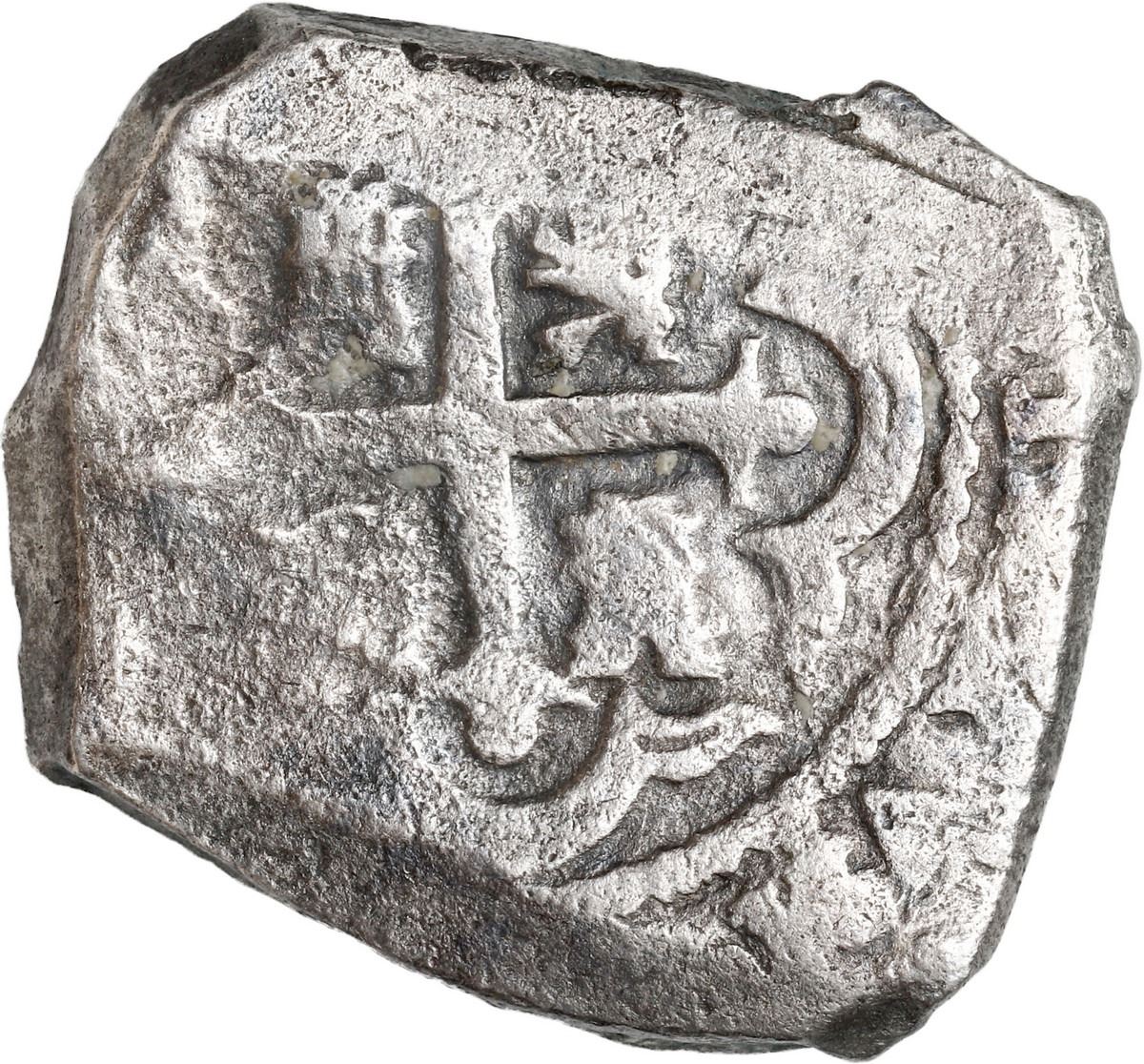 MEXICO, Mexico City, cob 8 reales, 1732 F. S-M26; KM-47a; Cal-1427. 25.97 grams. Thick, squarish flan with full cross, clear 32 date above oMF to left of most of shield (off-center), traces of surface corrosion, light toning with several dark spots. With original certificate TC 920547 from the salvors. Recovered from: Vliegenthart, sunk in 1735 off Zeeland, Netherlands