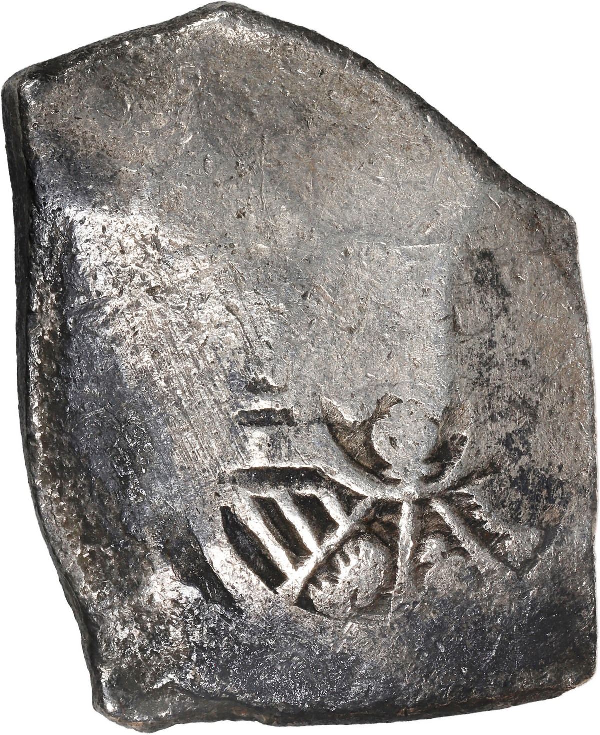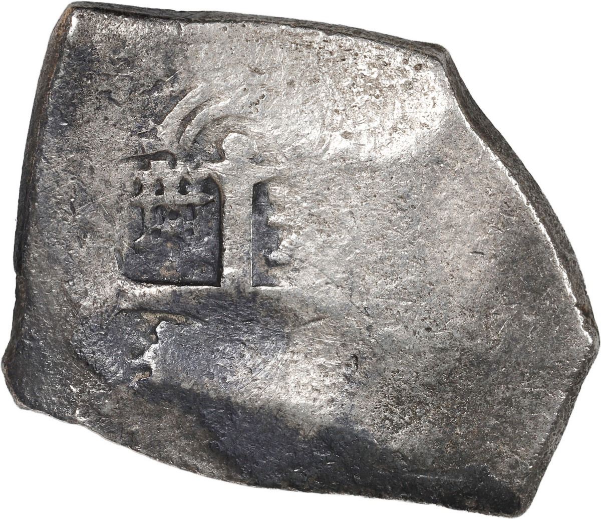 MEXICO, Mexico City, cob 8 reales, Louis I or Philip V, assayer not visible, style of 1725-33. 25.92 grams. Mostly flat but with enough cross and shield visible to attribute the period (full bar in Austria), patchy dark toning but practically no corrosion. SOLD FOR THE BENEFIT OF THE 1715 FLEET SOCIETY. Recovered from: Rooswijk, sunk in 1739 southeast of England
