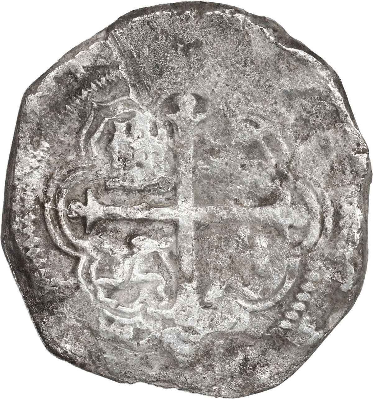 MEXICO, Mexico City, cob 8 reales, Philip III, assayer F. 21.75 grams. Good full cross-lions-castles, most of shield despite moderate corrosion, patchy toning, scarce type for this wreck. With original photo-certificate from the salvor. Recovered from: Campen, sunk in 1627 off the Isle of Wight, south of England