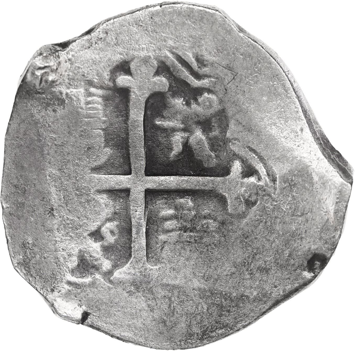 MEXICO, Mexico City, cob 8 reales, Philip IV, assayer D (late 1620s to early 1630s). S-M18a; KM-45; Cal-Type 319. 26.25 grams. Solid and corrosion-free but with much flatness and unevenly thick, off-center cross and shield, full oMD, lightly toned. With original certificate from Captain Tracy Bowden through his contract with the Dominican Republic. Recovered from: Concepción, sunk in 1641 off Hispaniola
