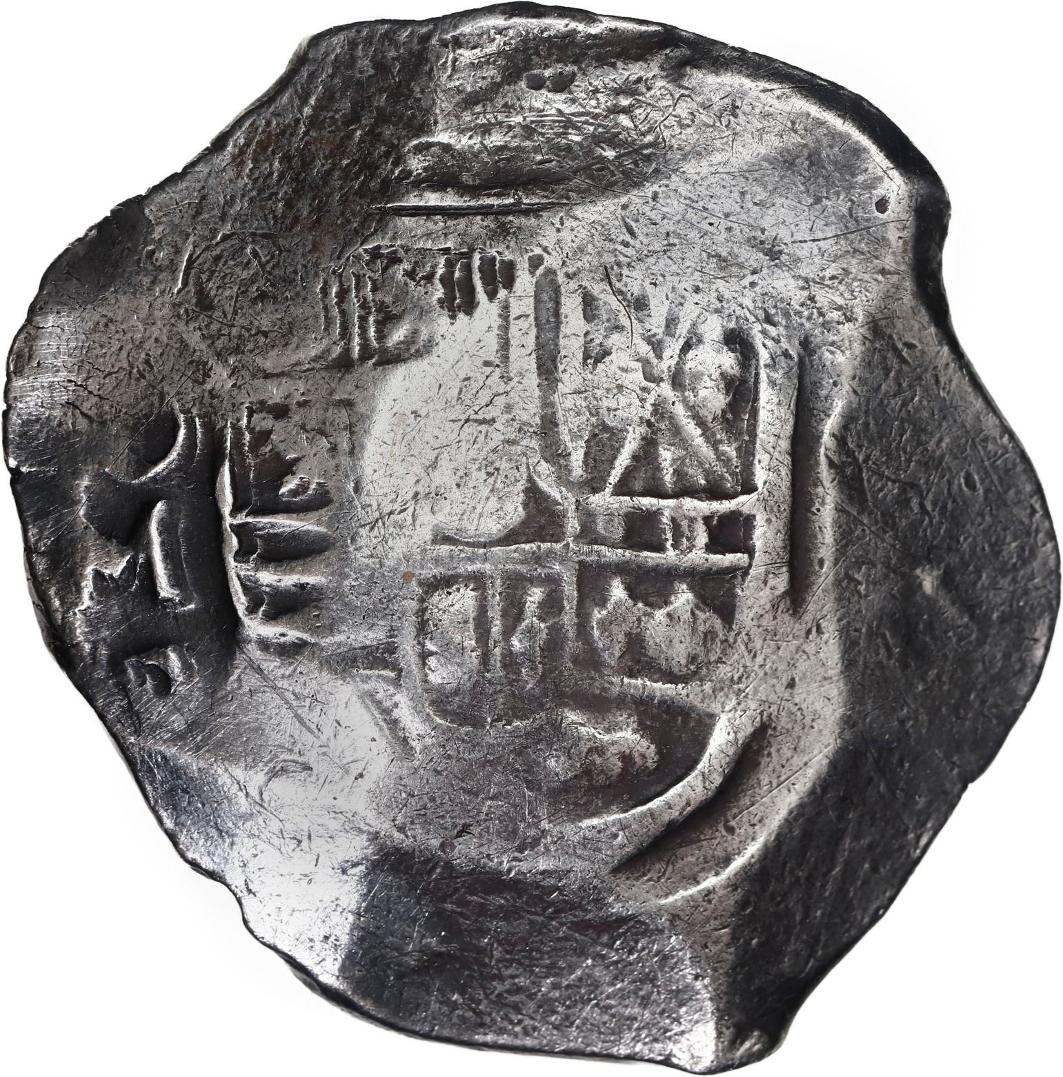 MEXICO, Mexico City, cob 8 reales, Philip IV, assayer D. S-M18a; KM-45; Cal-Type 319. 27.57 grams. Very broad, cupped flan with flat peripheries due to typical uneven thickness but with great full cross and shield, clear oMD, lightly toned. With original certificate from Captain Tracy Bowden through his contract with the Dominican Republic. Recovered from: Concepción, sunk in 1641 off Hispaniola