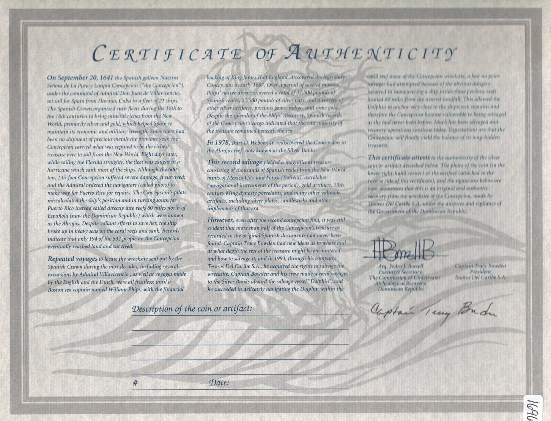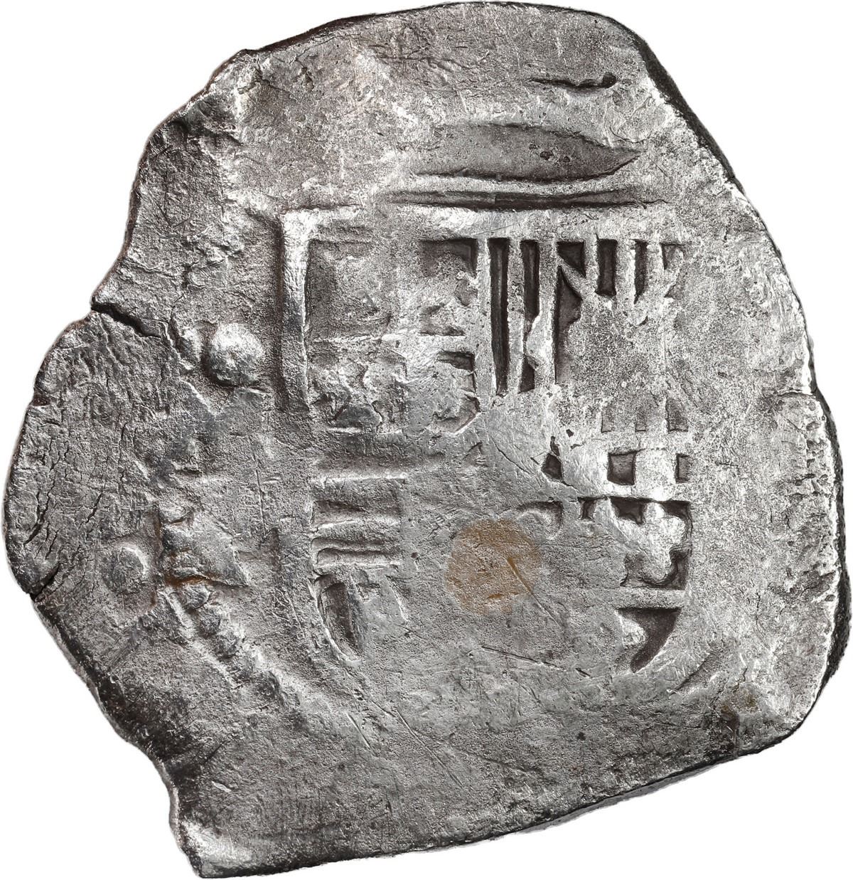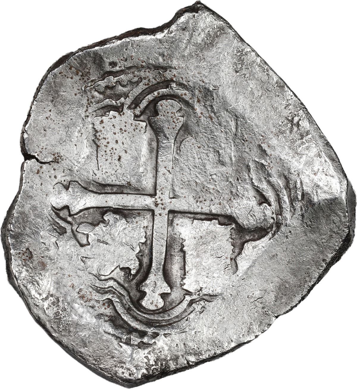 MEXICO, Mexico City, cob 8 reales, Philip IV, assayer P. S-M19; KM-45; Cal-Type 319. 26.06 grams. Solid, minimally corroded piece with visible mintmark and assayer to left of bold partial shield, nice complete cross, rather broad. With original certificate from Captain Tracy Bowden through his contract with the Dominican Republic. Recovered from: Concepción, sunk in 1641 off Hispaniola