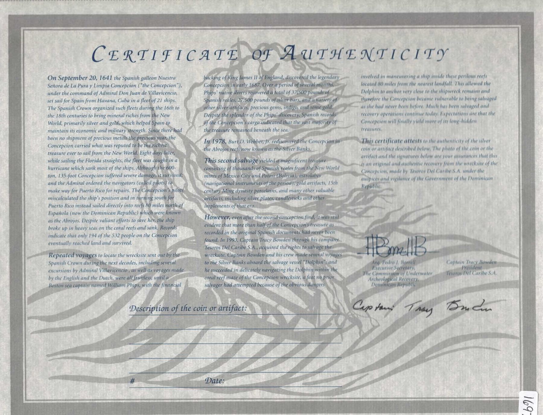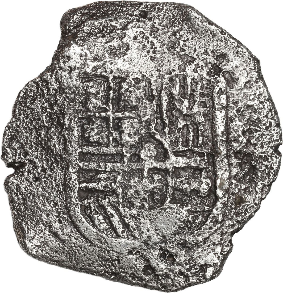 MEXICO, Mexico City, cob 8 reales, Philip IV, assayer not visible (P). S-M19; KM-45; Cal-Type 319. 24.09 grams. Choice full cross, corroded shield side though with some detail still showing through. With original certificate from Captain Tracy Bowden through his contract with the Dominican Republic. Recovered from: Concepción, sunk in 1641 off Hispaniola