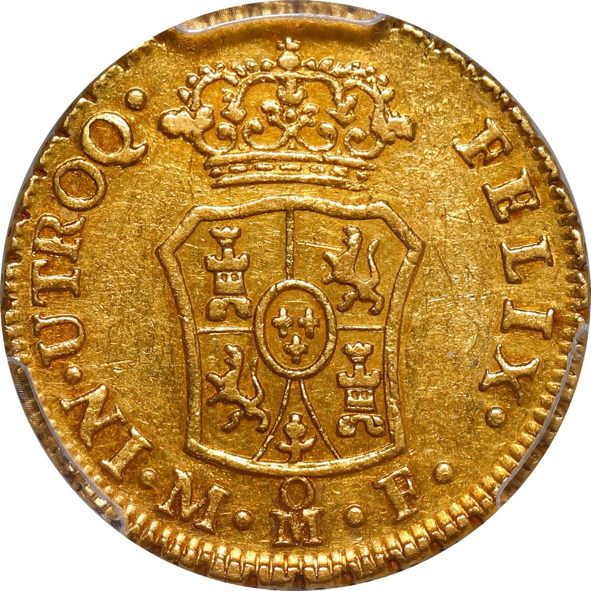 MEXICO, Mexico City, gold bust 1 escudo, Charles III ("rat nose" bust), 1768 MF, rare, PCGS XF45, finest and only example in PCGS census. Cal-1383; KM-117; Fr-32. Very lightly toned over muted luster, lovely aspect for this rare second ("rat nose") Charles III bust design, the finest of this date at either PCGS or NGC.