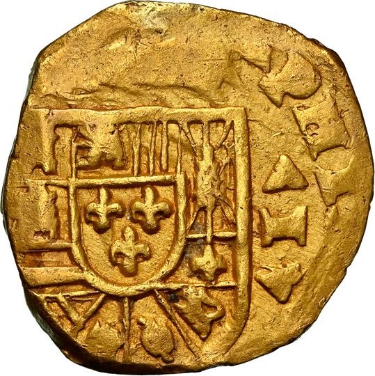 MEXICO, Mexico City, gold cob 1 escudo, Philip V, assayer not visible, style of 1725-33, extremely rare, NGC AU 58. Cal-Type 208; Fr-7c; KM-51.2. 3.35 grams. Neat but compact flan with choice full cross-and-tressure, nearly full shield with bold denomination to right inside PHIL- of king's name, attributable to 1725 or later (hence assayer D, R, G, or F) for the connected bar of Austria, in fact one of only three graded by NGC for post-1715 (albeit labeled as assayer J, which it is not), just a few minor spots of toning or encrustation.