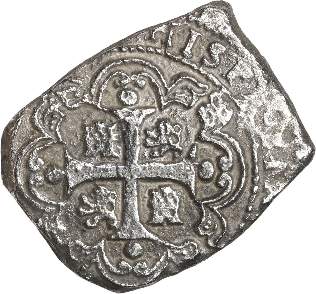 MEXICO, Mexico City, klippe 8 reales, (1733) F. S-M27; KM-48; Cal-1430. 21.56 grams. Well-detailed full shield and cross despite moderate corrosion all over, date not visible but clearly the scarce first type of 1733 with single-letter assayer below oM to left, very lightly toned in crevices. Recovered from: Spanish 1733 Fleet, Florida Keys