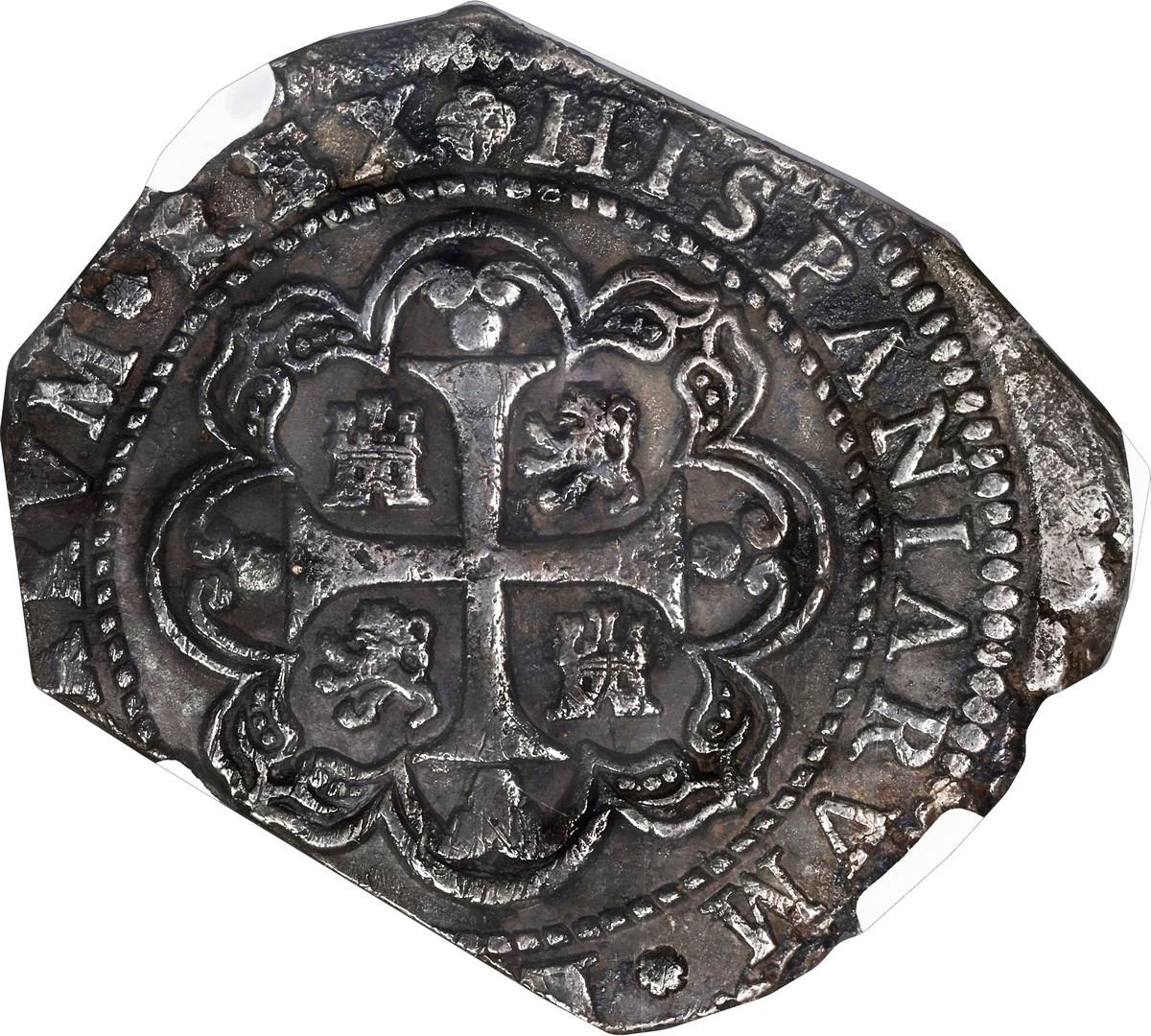 MEXICO, Mexico City, klippe 8 reales, 1733 MF, NGC Sea Salvaged (Shipwreck Blue Label). Yonaka-M8T-33; S-M28; KM-48; Cal-1431. 26.55 grams. Deeply toned and practically corrosion-free, with choice full inner details and lots of legend including full date, an exceptional coin for this wreck. Recovered from: Hollandia, sunk in 1743 off the Isles of Scilly, southwest of England