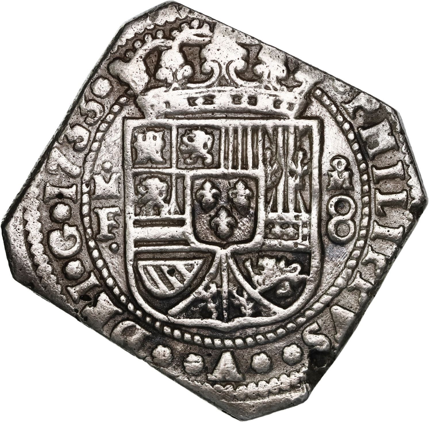 MEXICO, Mexico City, klippe 8 reales contemporary counterfeit, 1733 MF, very rare, ex-Ponterio. S-M28; KM-48; Cal-1431. 23.2 grams. This piece looks just like a typical, perfectly square-shaped klippe with full details, practically no corrosion, and lightly toned fields... until you notice the low weight, porosity, and low fineness (XRF tested at 80% silver) that make this piece a cast contemporary counterfeit (found among genuine examples on the wreck), just as it was described in the original Ponterio auction. Curiously, we have not seen any others of this counterfeit, nor the original it was cast from. Pedigreed to the original Ponterio "Rooswijk" auction of March-April 2006 (lot 137), with generic certificate from the salvors. Recovered from: Rooswijk, sunk in 1739 southeast of England