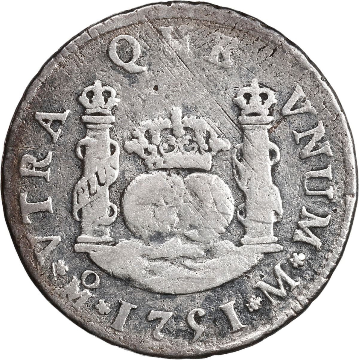 MEXICO, Mexico City, pillar 2 reales, Ferdinand VI, 1751 M. Yonaka-M2-51; KM-86.1; Cal-291. 6.33 grams. Fine with dark fields showing a little corrosion, a few scratches.