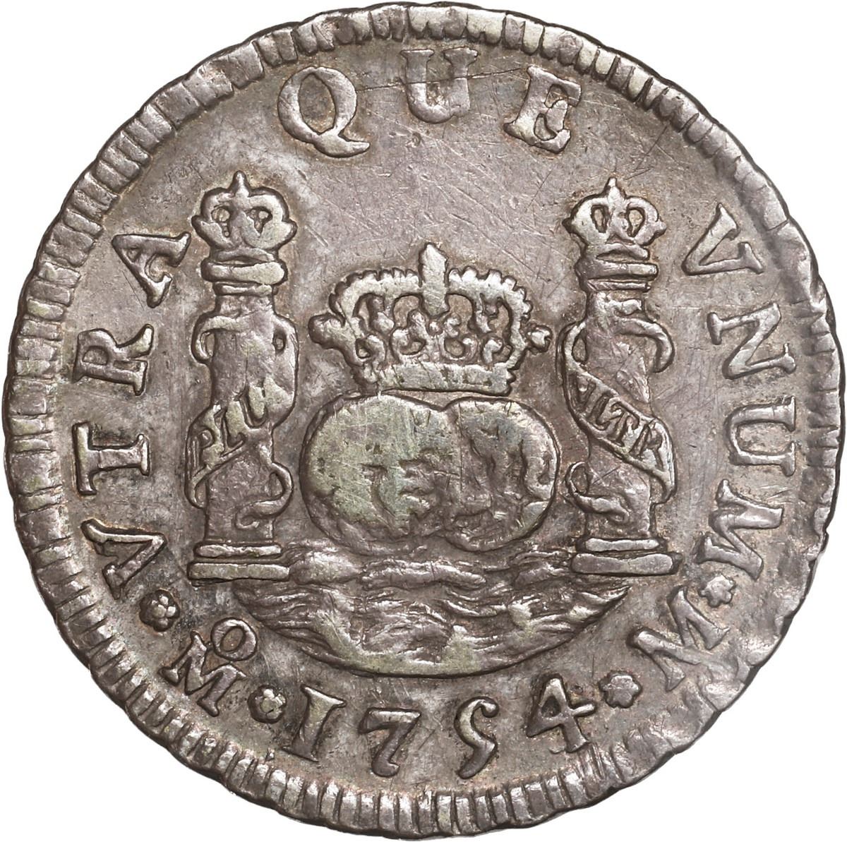 MEXICO, Mexico City, pillar 2 reales, Ferdinand VI, 1754/3 M, rare, ex-Potomac.