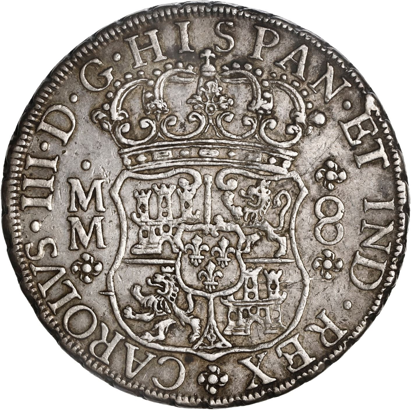 MEXICO, Mexico City, pillar 8 reales, Charles III, 1760 MM, ex-Brameld.
