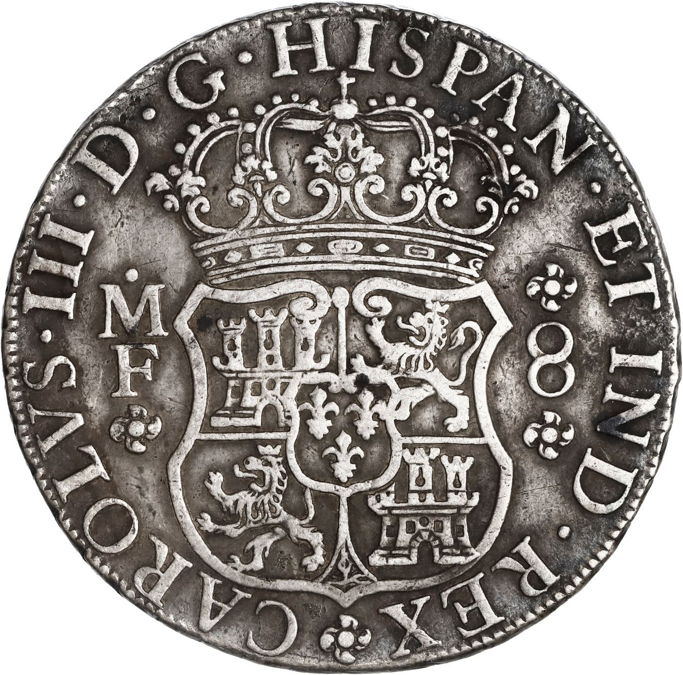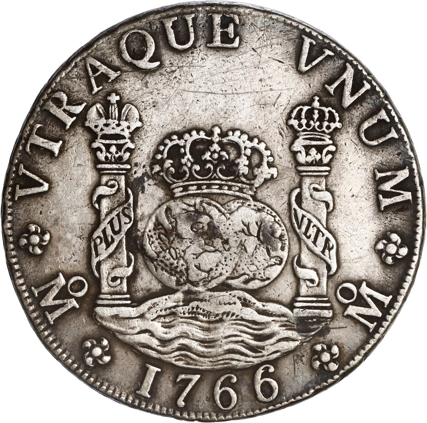 MEXICO, Mexico City, pillar 8 reales, Charles III, 1766/5 MF, ex-Brameld.