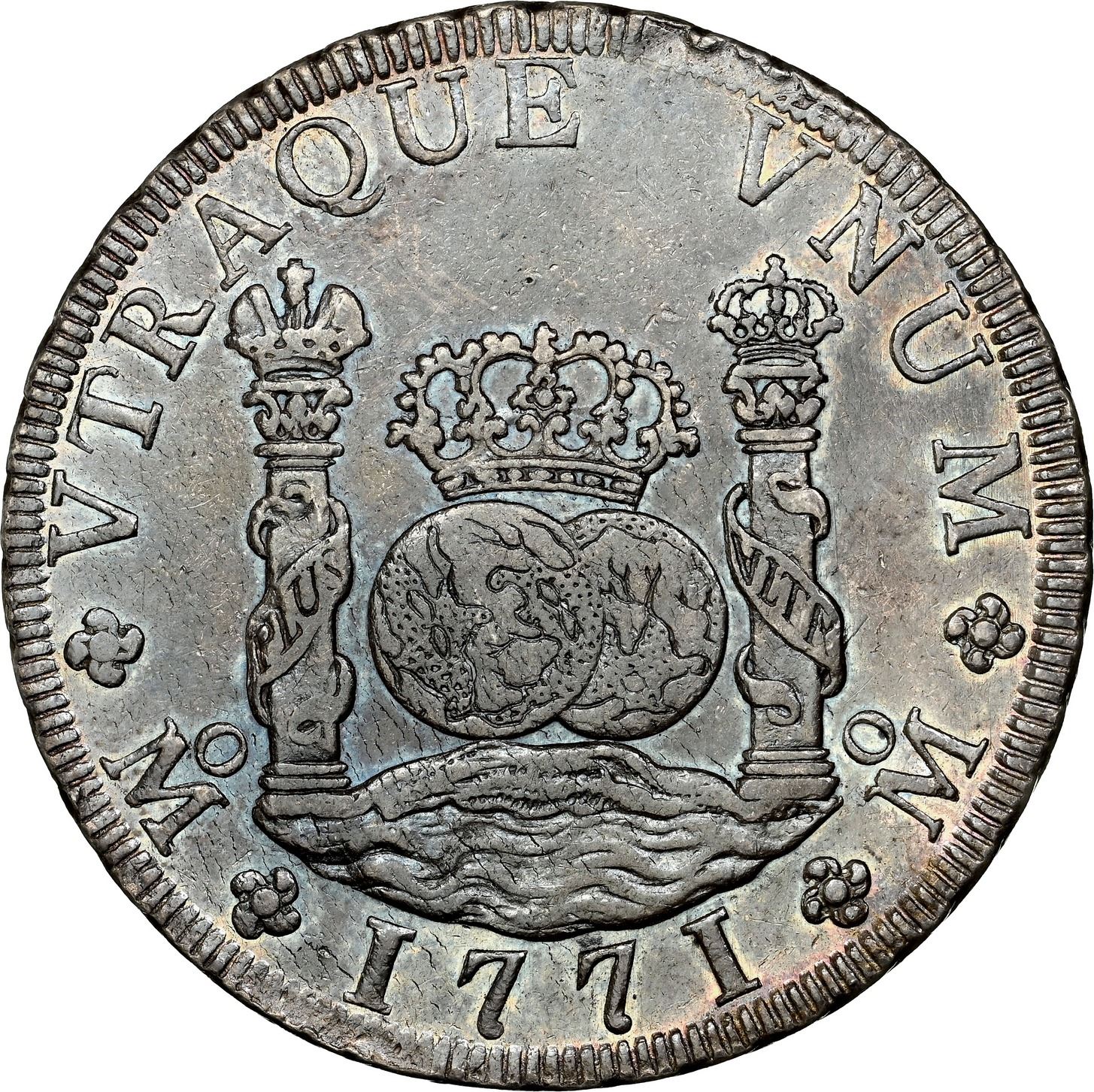 MEXICO, Mexico City, pillar 8 reales, Charles III, 1771 FM, NGC MS 61.
