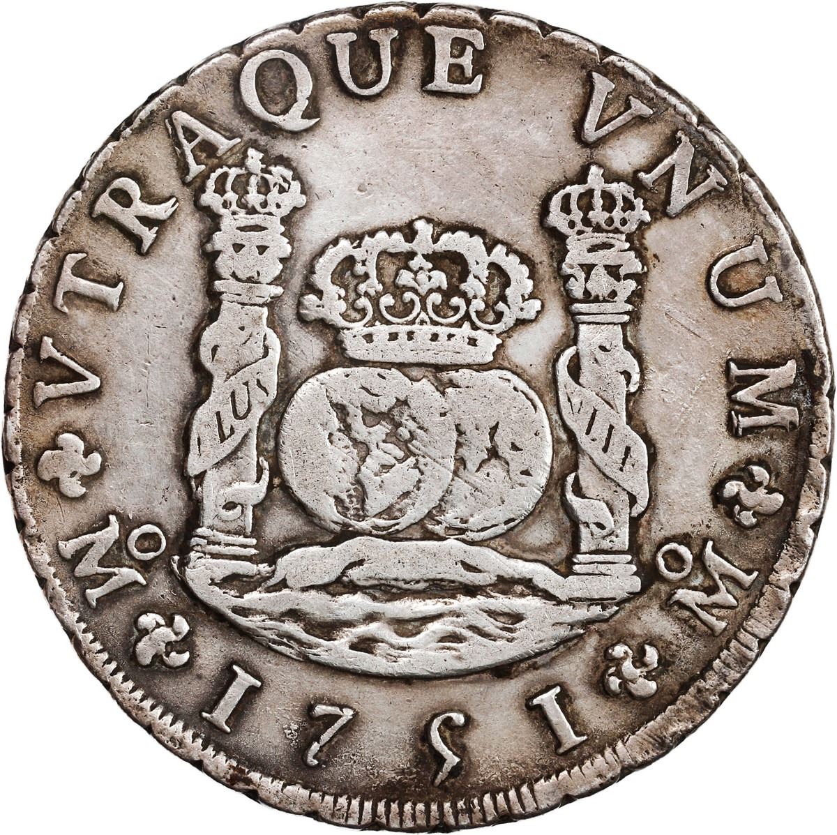 MEXICO, Mexico City, pillar 8 reales, Ferdinand VI, 1751 MF.