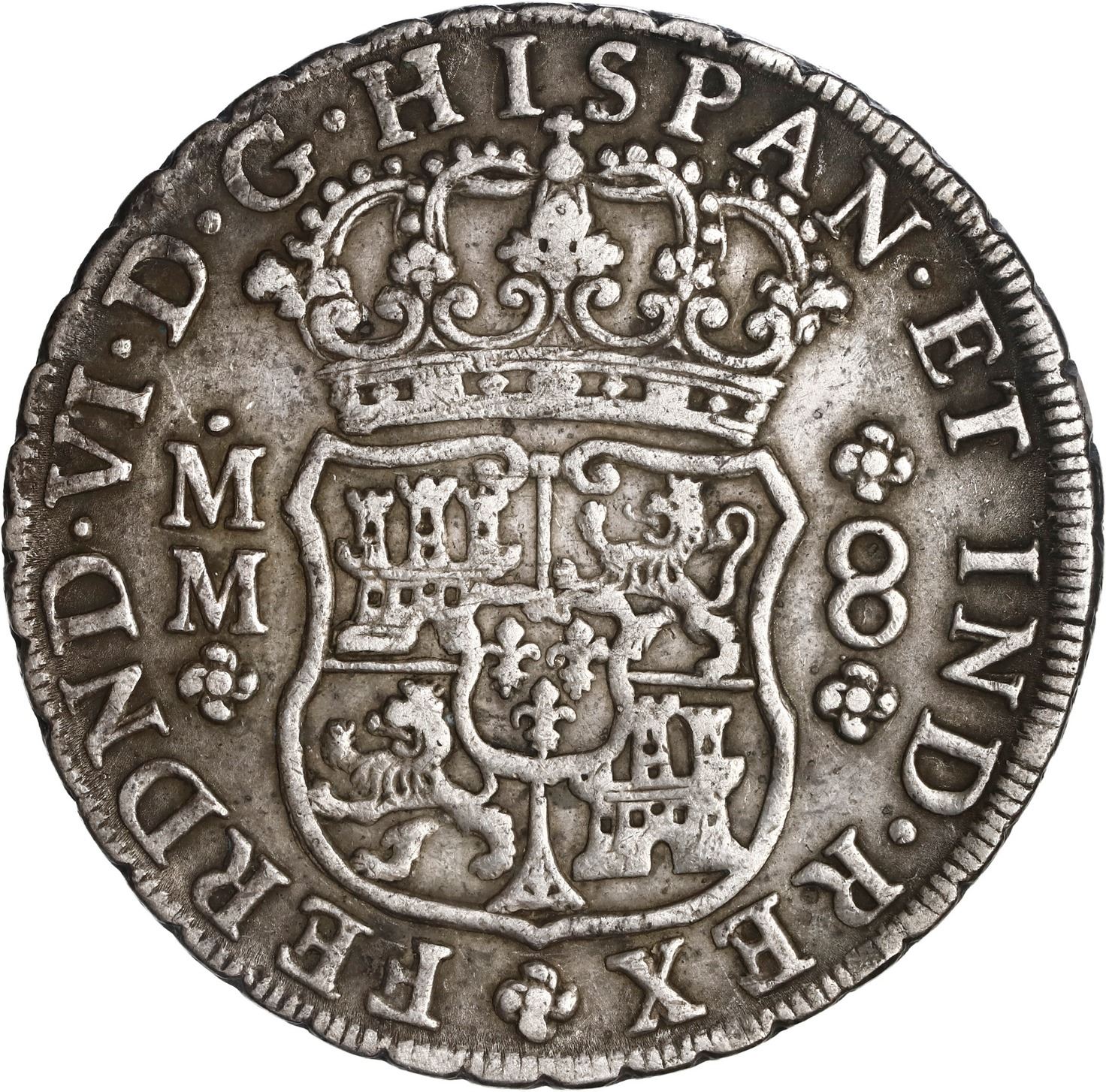 MEXICO, Mexico City, pillar 8 reales, Ferdinand VI, 1754 MM, dissimilar crowns, ex-Brameld.