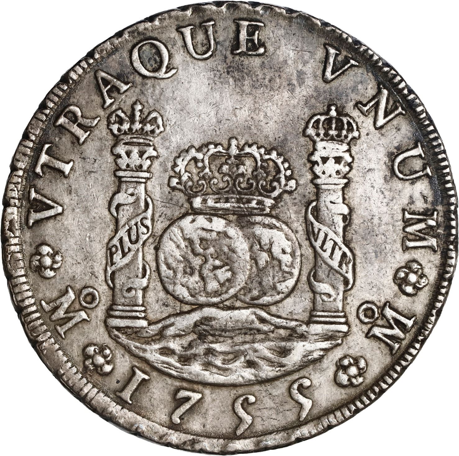 MEXICO, Mexico City, pillar 8 reales, Ferdinand VI, 1755 MM, ex-Brameld.