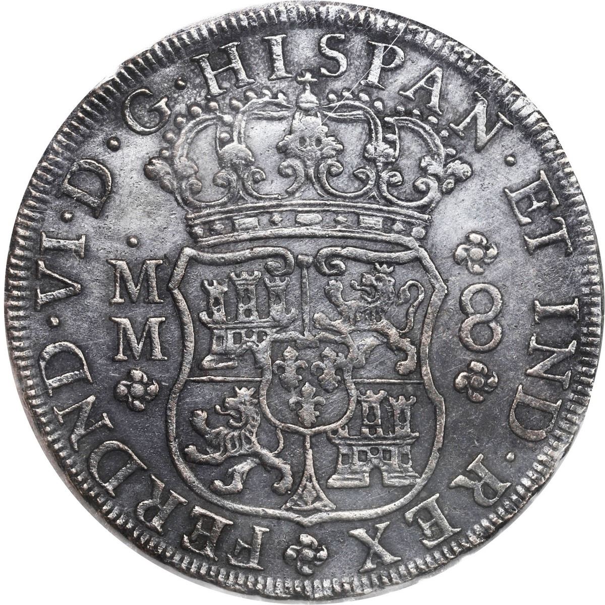 MEXICO, Mexico City, pillar 8 reales, Ferdinand VI, 1756 MM, ICCS EF-45.